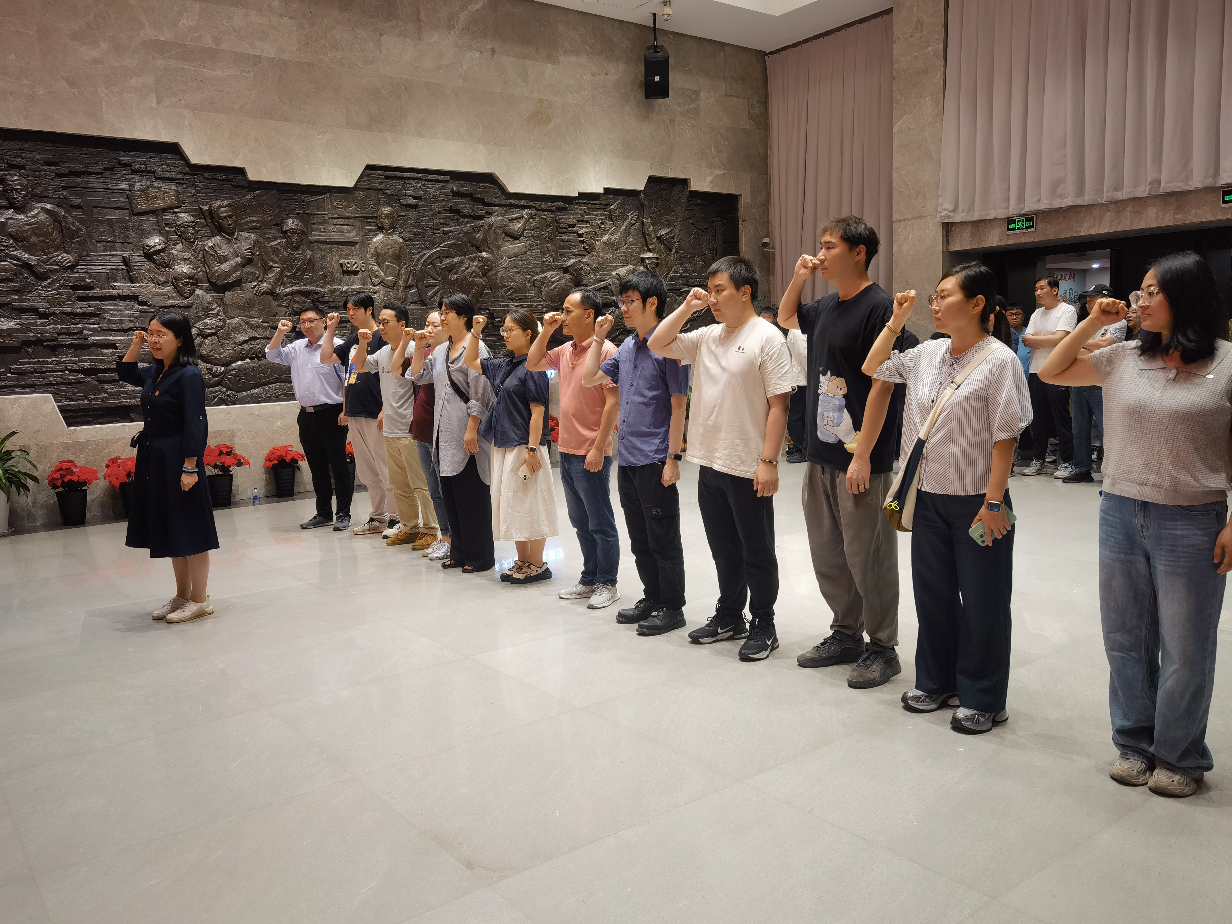 在庄严肃穆的中共四大纪念馆宣誓大厅,全体党员庄严举起右拳,重温入党誓词。铿锵有力的誓言回荡在纪念馆中,表达了党员同志们对党的无限忠诚和为共产主义事业奋斗终身的坚定信念。随后,党员们依次参观了“时局与形势”“筹备与召开”“发展与高潮”三大主题展区,系统学习了中共四大召开的时代背景、主要成果及其在党的历史上的重要地位,深刻感悟早期共产党人探索中国革命道路的艰辛历程与伟大建党精神。