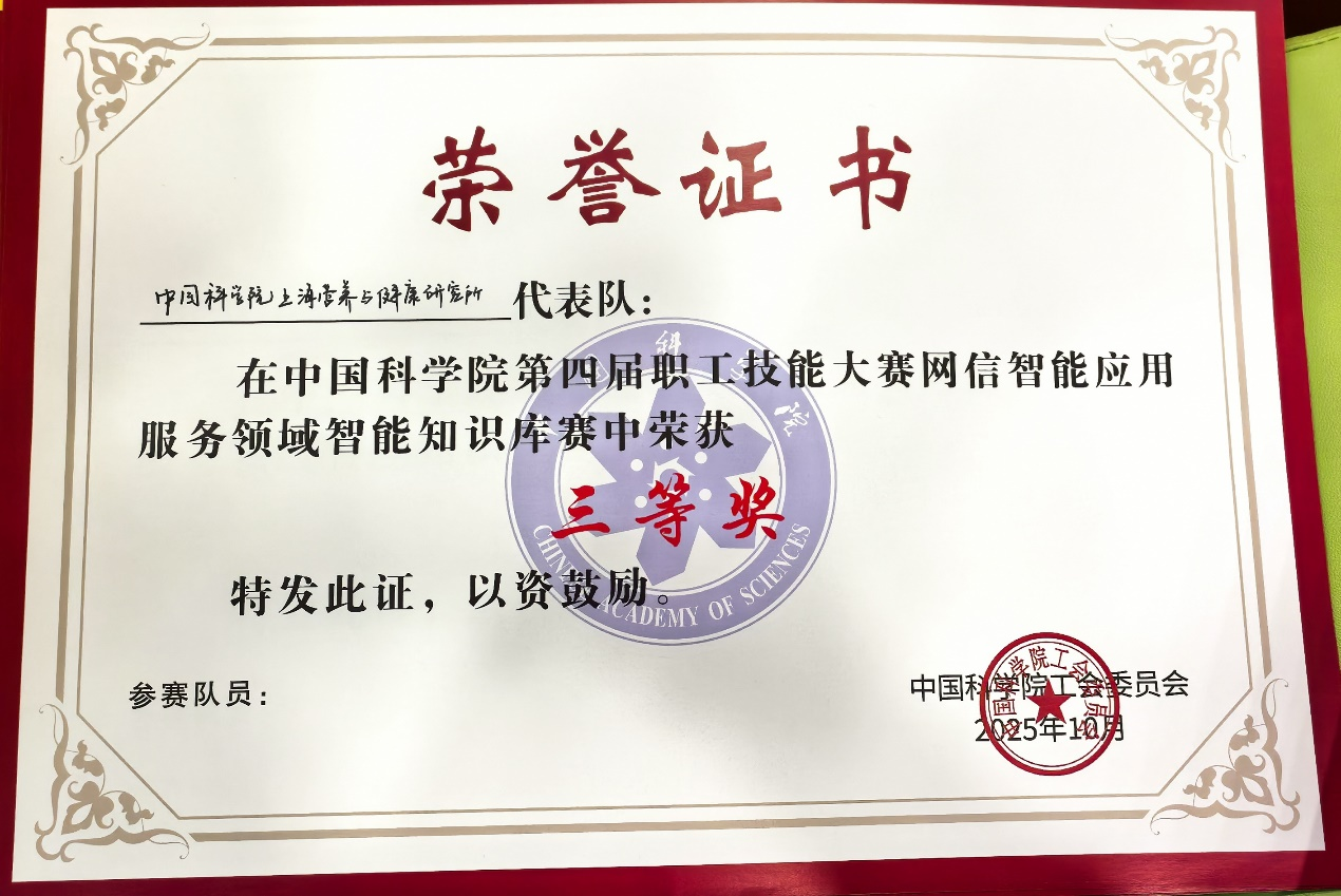 近日,中国科学院上海营养与健康研究所代表队凭借在智能知识库建设与人工智能应用领域的创新实力与团队协作精神,在中国科学院第四届职工技能大赛智能知识库赛道中荣获三等奖。