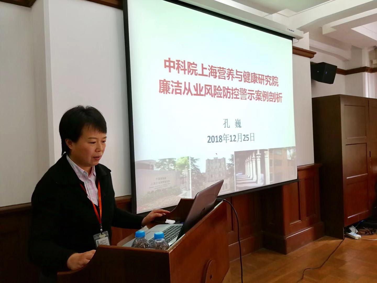 2018年12月25日,上海营养与健康研究院召开廉洁从业风险防控警示教育会议。上海生科院党委书记蔡澎、纪委书记孔巍,各职能管理部门负责人、平台负责人、研究组秘书等近70位同志参加会议?;嵋橛闪习旃抑魅嗡锏现鞒帧?/span>
