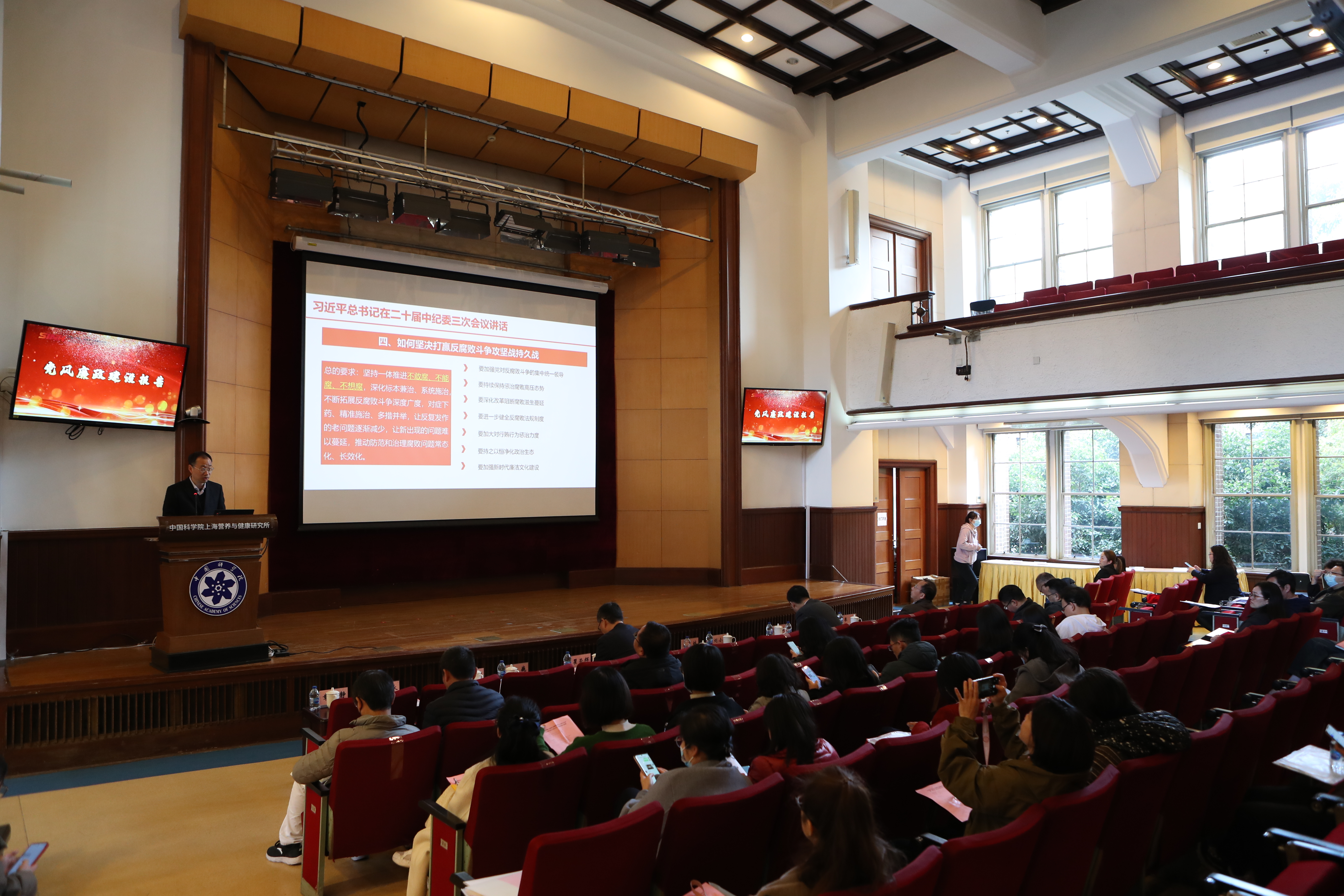 3月15日下午,中国科学院上海营养与健康研究所召开2024年度党风廉政建设大会。研究所领导班子成员、党委委员、所务委员、纪委委员、各基层党组织及群团组织负责人、职工代表,副高及以上专业技术人员、职能部门全体工作人员等150余人参加会议?;嵋橛杉臀榧遣苡乐鞒?。