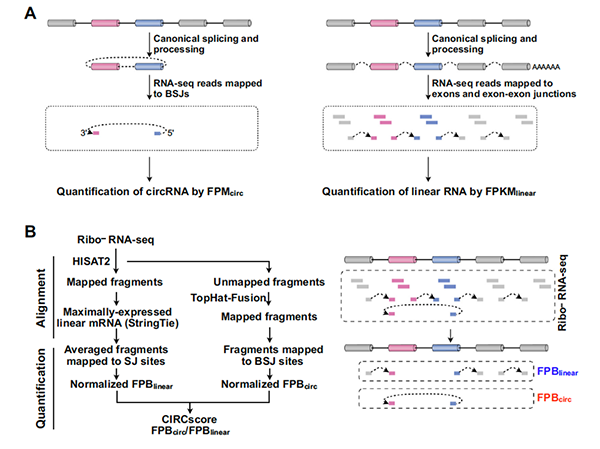 图1: CIRCexplorer3-CLEAR分析新流程用于环形RNA与线形RNA直接定量比较