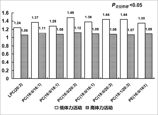 图3. 根据体力活动水平对血浆甘油磷脂与新发糖尿病间关联关系进行分层分析