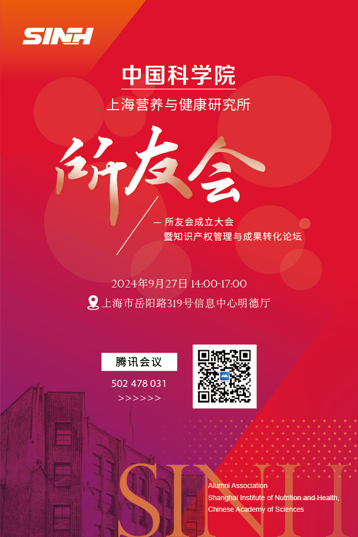 邀您线下/线上参会!中国科学院上海营养与健康研究所所友会成立大会暨知识产权管理与成果转化论坛