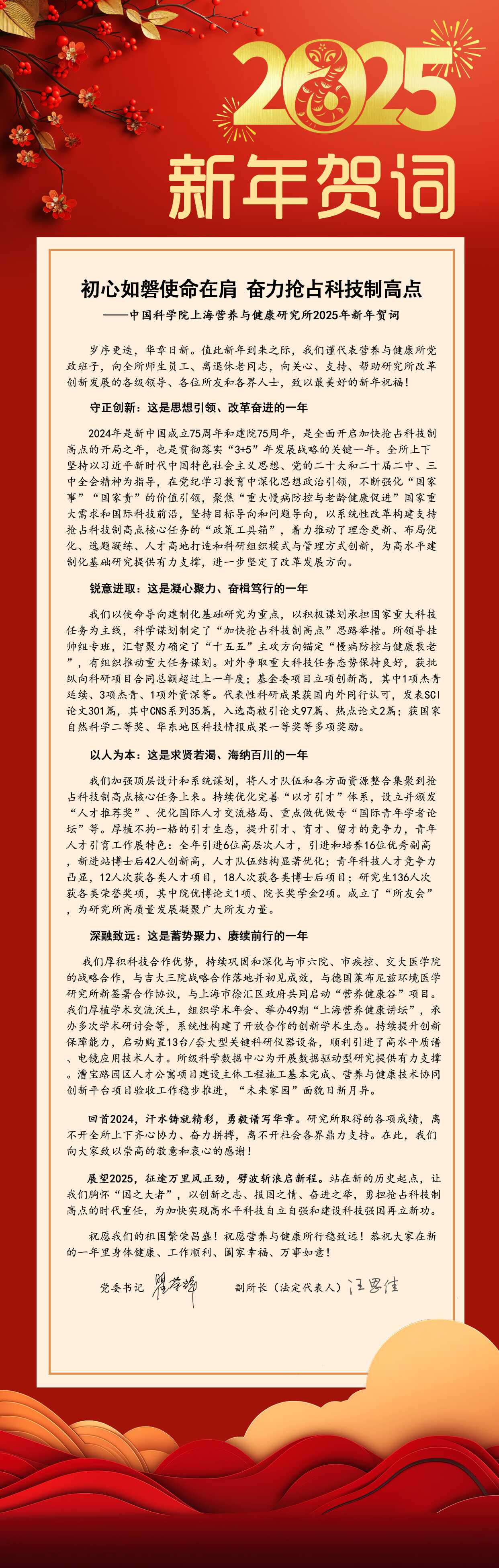 中国科学院上海营养与健康研究所2025年新年贺词