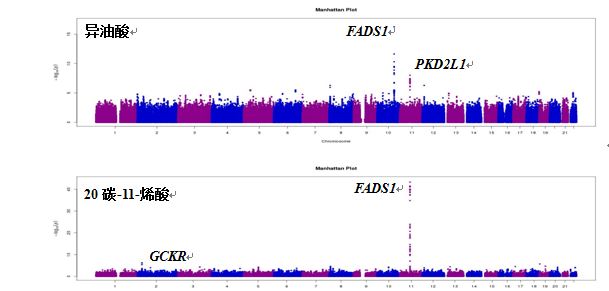 图1: 单不饱和脂肪酸水平的全基因组关联分析曼哈顿图?