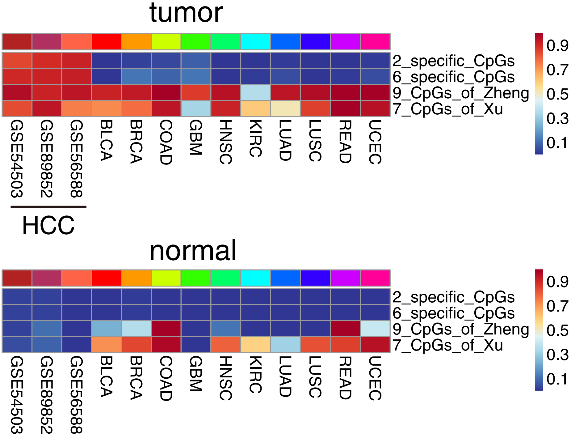 李亦学研究组的李虹、程锦明等通过比较375个肝癌组织、50个正常肝组织、184个健康人血液、以及3780个其它癌症患者的甲基化图谱,筛选出了肝癌中特异高甲基化的位点?;谡庑┪坏闶褂肔ogistic回归建立了肝癌预测模型,对三套独立数据集(327个HCC和122个正常样本)和10个临床病人样本进行评估。结果表明肝癌预测模型对肝癌的预测灵敏度达到92%,并能排除98%的正常肝组织和其它类型的癌症。与已发表的肝癌甲基化标志物相比,研究人员找到的标志物是唯一可以将HCC与其它癌症区分开的?;诟孟罘⑾值暮笮芯恳丫箍?。