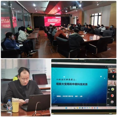 2022年12月7日下午,信息中心第一党支部、管理与支撑第二党支部与计算生物学第二党支部联合举行共建支部联组学习暨专题组织生活会?;嵋橥ü呱舷呦路绞酵苯?,50多位党员参加活动。 纪委书记曹永同志受邀参会并主持联组学习环节。此次联组学习为研究所党委主办,三个共建支部承办的“党的二十大精神系列讲座”之一。讲座邀请前中国驻纽约总领馆正司级参赞邢继俊博士做题为“从科技创新维度观察大变局和中美科技关系”的专题报告,报告以线上方式向全所党员同志开放,共建支部党员在线下集中收看。曹永同志在总结时指出:面临百年未有之大变局,科技创新是关键变量,中科院作为国家战略科技力量,要有国家队的担当。我们要深刻认识科技创新对于国家发展、民族复兴、个人成长的意义。报告中的内容也提示我们中国崛起势不可挡,道路坎坷不能动摇,信心比黄金更珍贵。在党的二十大精神的指引下,我们务必做到自信自强、守正创新、踔厉奋发、勇毅前行。
