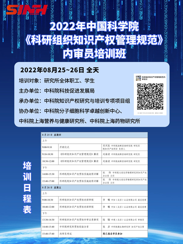 2022年中科院《科研组织知识产权管理规范》内审员培训班