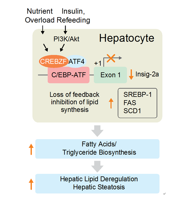 脏中CREBZF对Insig的转录调控模型:治疗肝脏脂代谢紊乱与脂质沉积的潜在作用方式