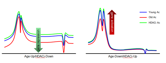 大脑的炎性衰老是衰老相关的神经退行性疾病的一个主要标志。研究人员通过对人和小鼠大脑中H3K27ac和基因表达数据的整合分析,发现随衰老上调和下调的基因上具有完全不同的H3K27ac修饰模式。尽管H3K27ac在两类基因的启动子上均有分布,然而富集免疫相关功能并随衰老上调的基因的基因体上却有着更为广泛的H3K27ac修饰,并且这些修饰会随着衰老逐渐丢失。与启动子区H3K27ac的转录激活功能不同,基因体超乙?;种屏搜仔运ダ舷喙鼗虻墓燃せ?,并且基因体上的H3K27ac水平,可以用来预测基因在衰老过程中的变化方向。上述研究证实了H3K27ac在随衰老上调或下调的基因上行使截然相反的调控功能,并且提出了基因体超乙?;种谱嫉男履J?。