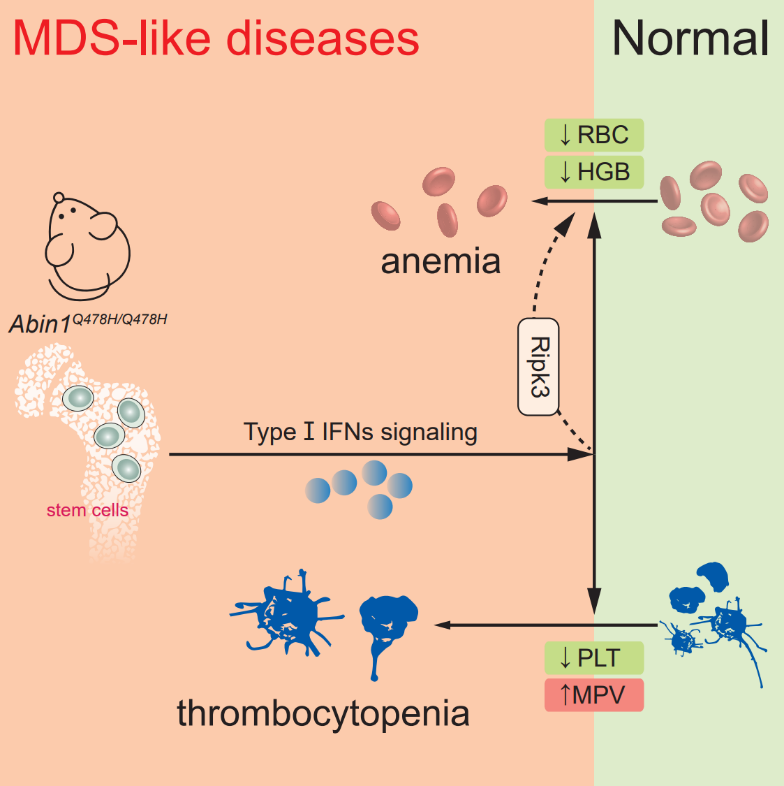图注:ABIN1泛素结合功能介导I-型干扰素表达控骨髓增生异常综合症