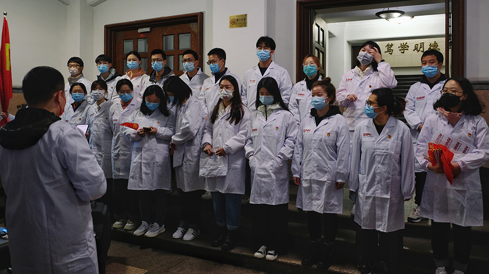 在简短的出征仪式上,营养与健康所核酸检测志愿者临时党支部书记吴小霞带领大家重温入党誓词。志愿者代表王永强发言,表达了对此次守“沪”行动的感想和决心。全体志愿者一同高呼,“抗疫有我、不负青春!”