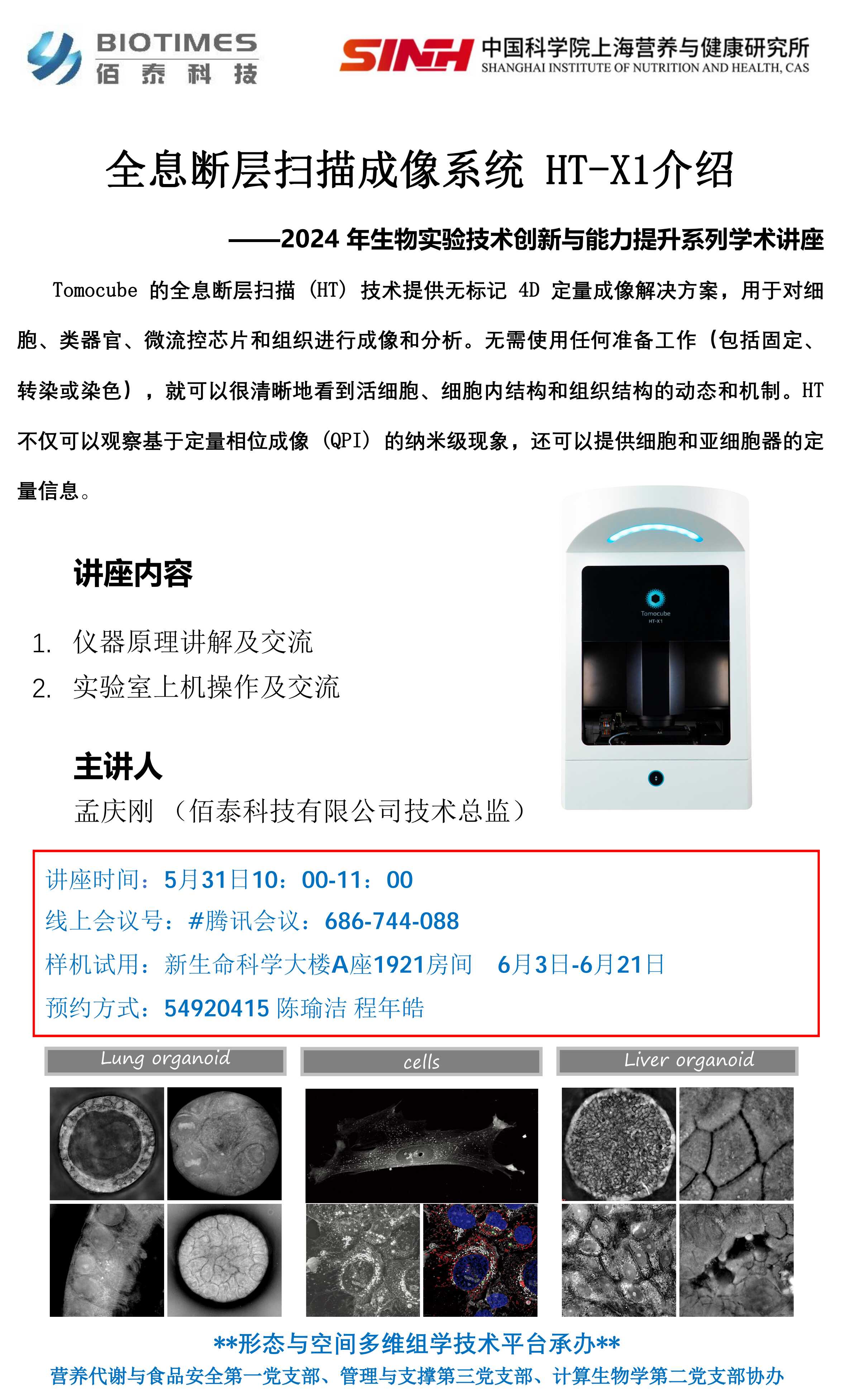 形态与空间多维组学技术平台丨全息断层扫描成像系统HT-X1介绍——2024年生物实验技术创新与能力提升系列学术讲座