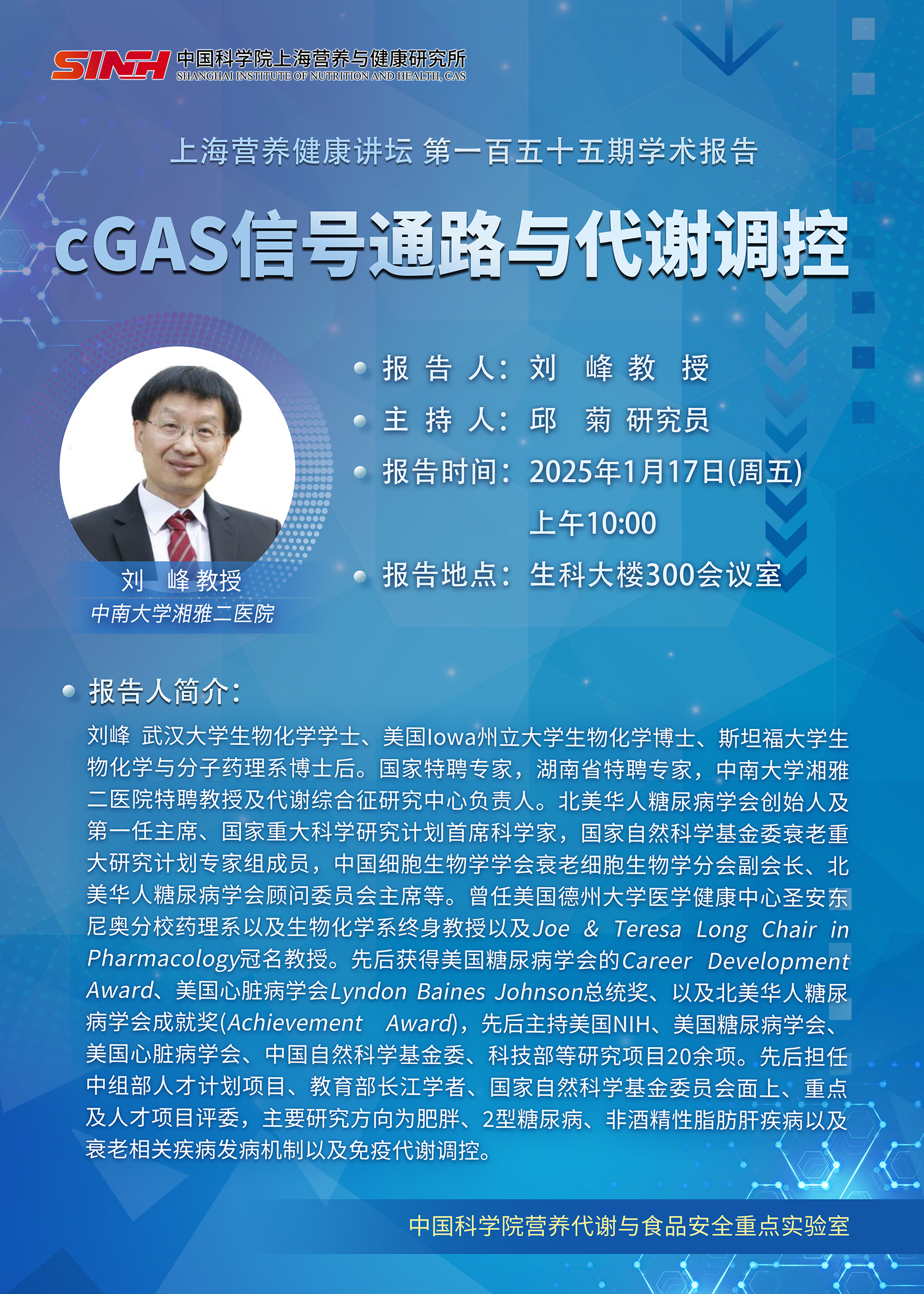 1月17日|cGAS信号通路与代谢调控-上海营养健康讲坛