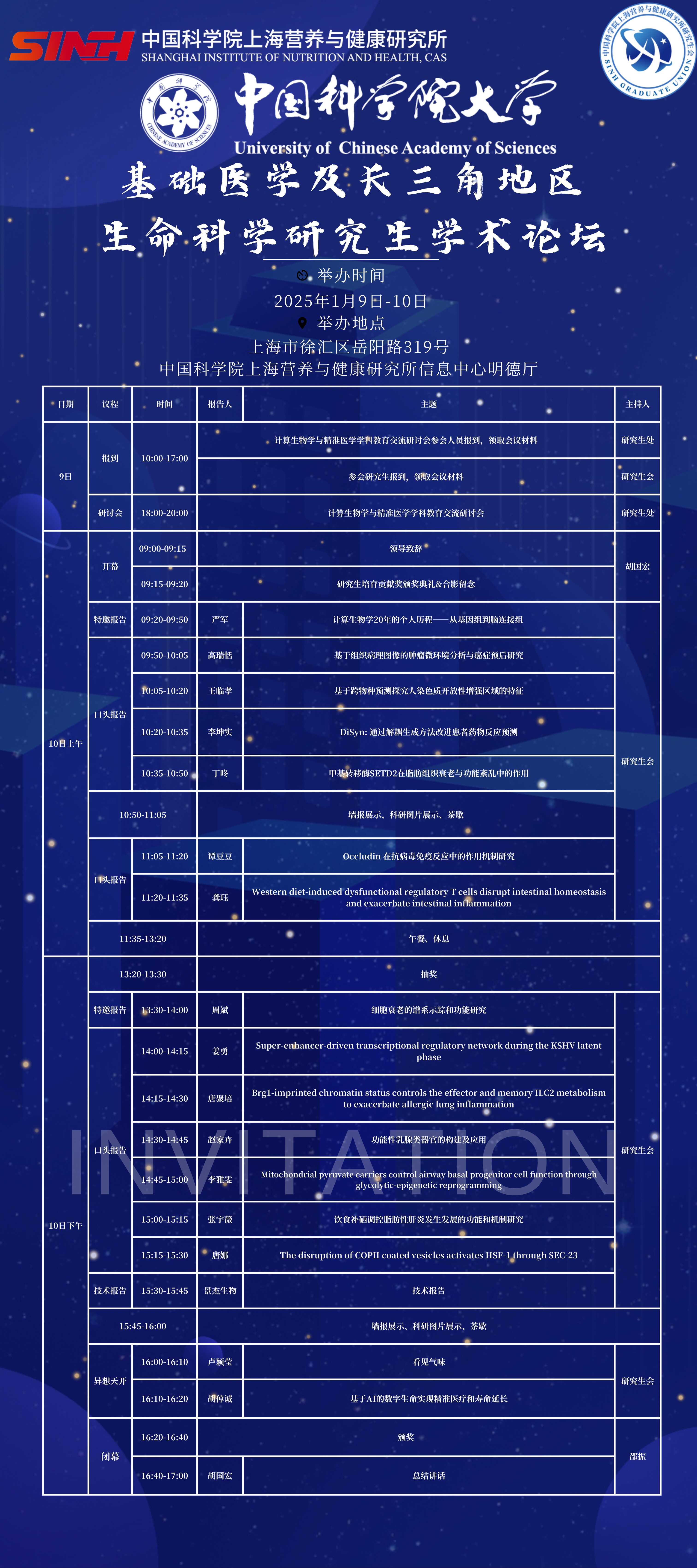 议程速览!中国科学院大学基础医学及长三角地区生命科学研究生学术论坛