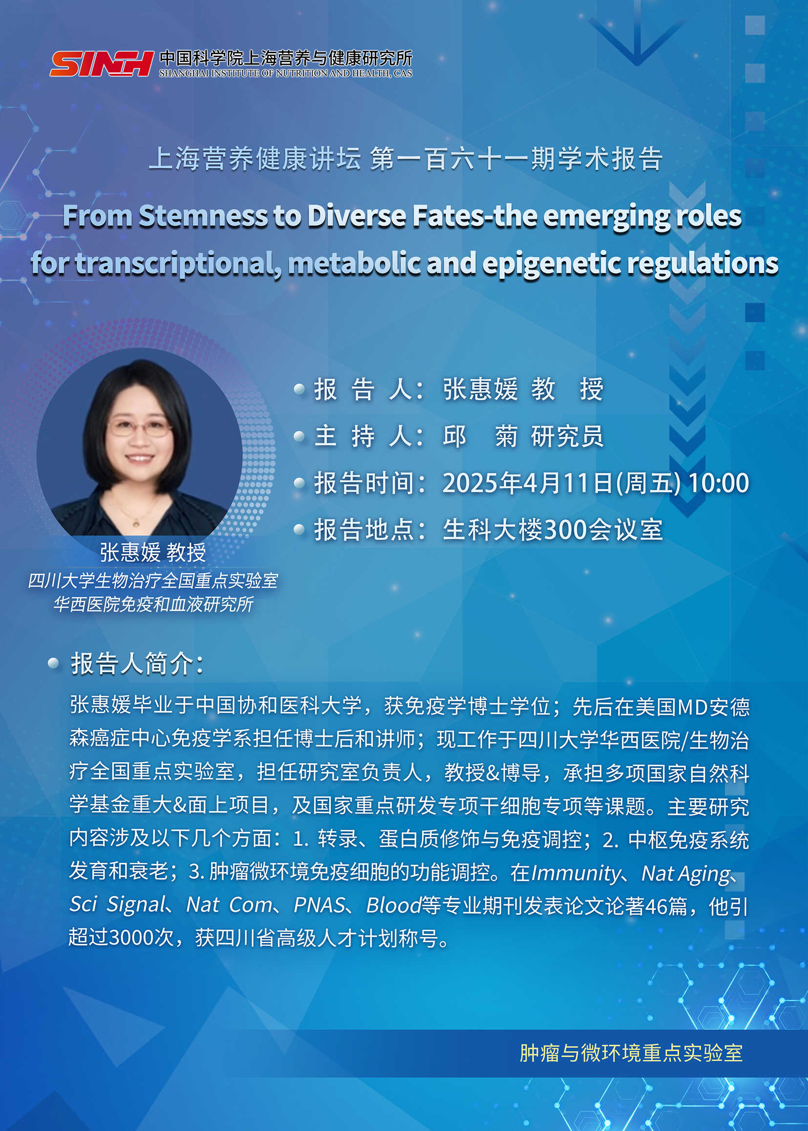 4月11日|From Stemness to Diverse Fates-the emerging roles for transcriptional, metabolic and epigenetic regulations-上海营养健康讲坛
