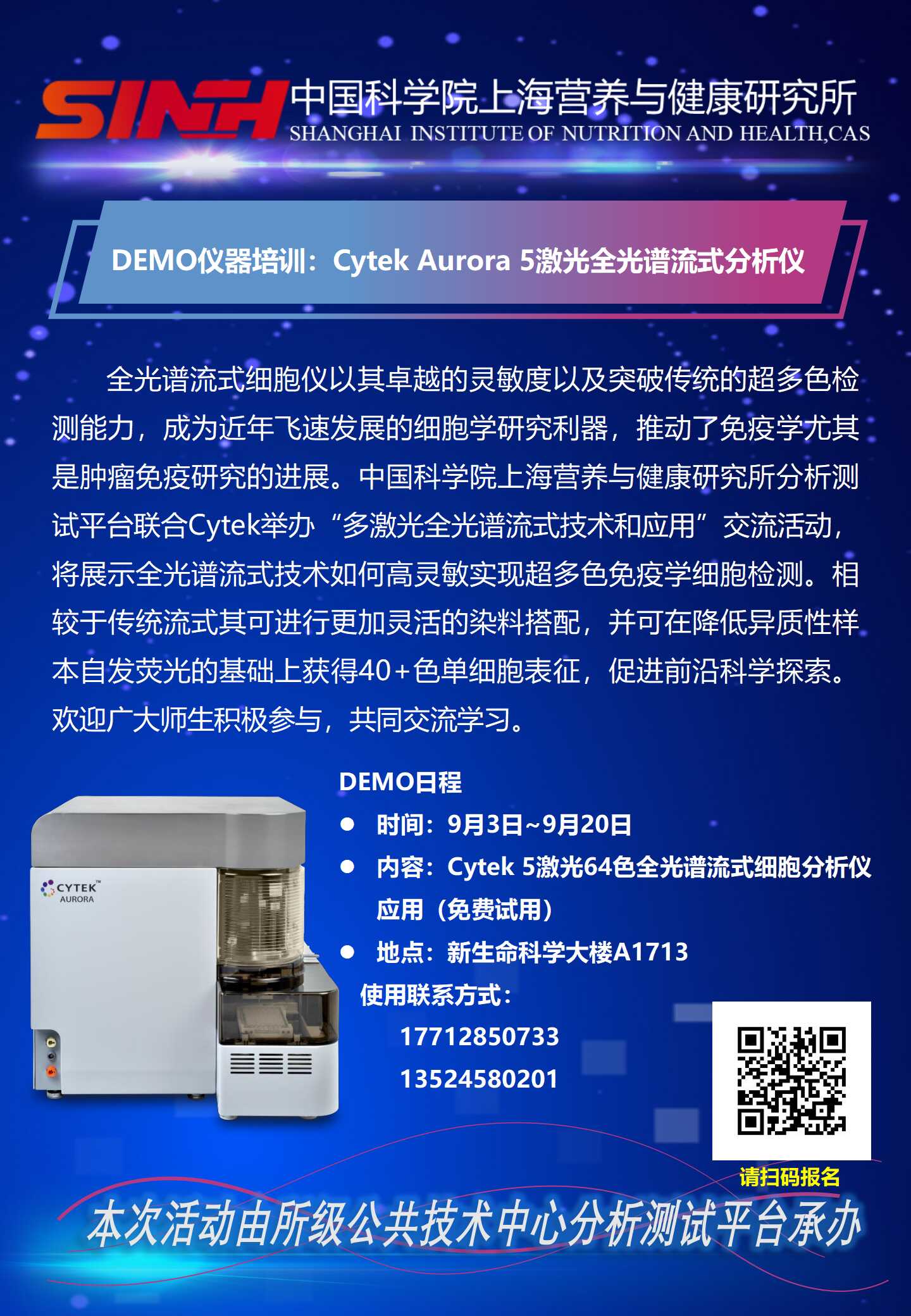 9月3日至20日|DEMO仪器培训:Cytek Aurora 5激光全光谱流式分析仪