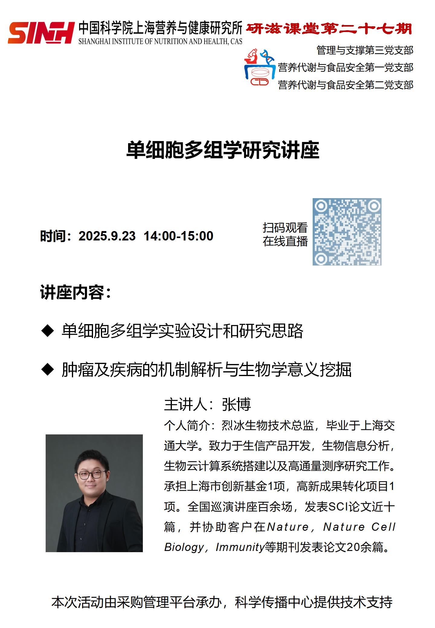 9月23日|单细胞多组学研究讲座(肿瘤及疾?。?研滋课堂