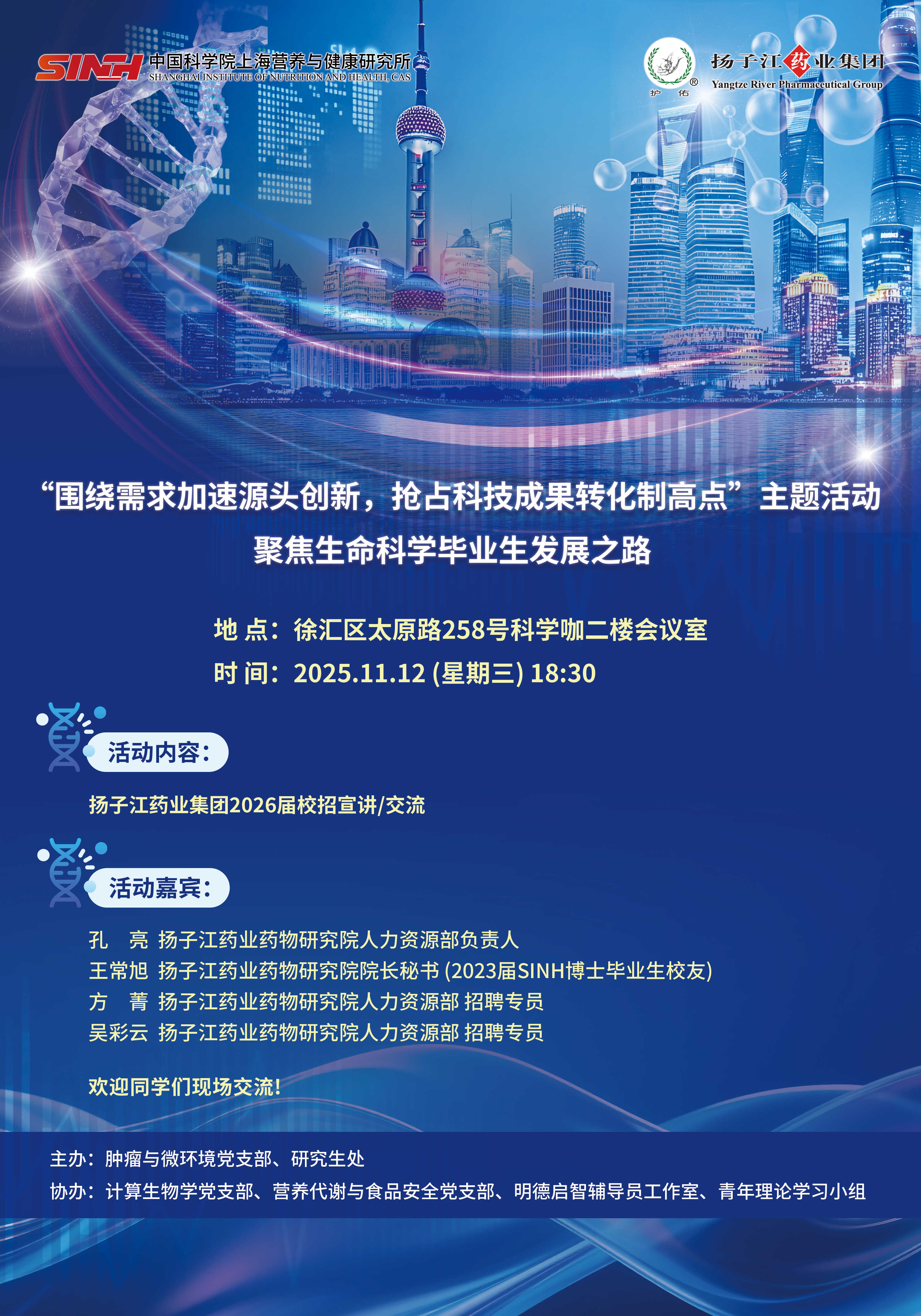 11月12日|聚焦生命科学毕业生发展之路-扬子江药业集团2026届校招宣讲交流