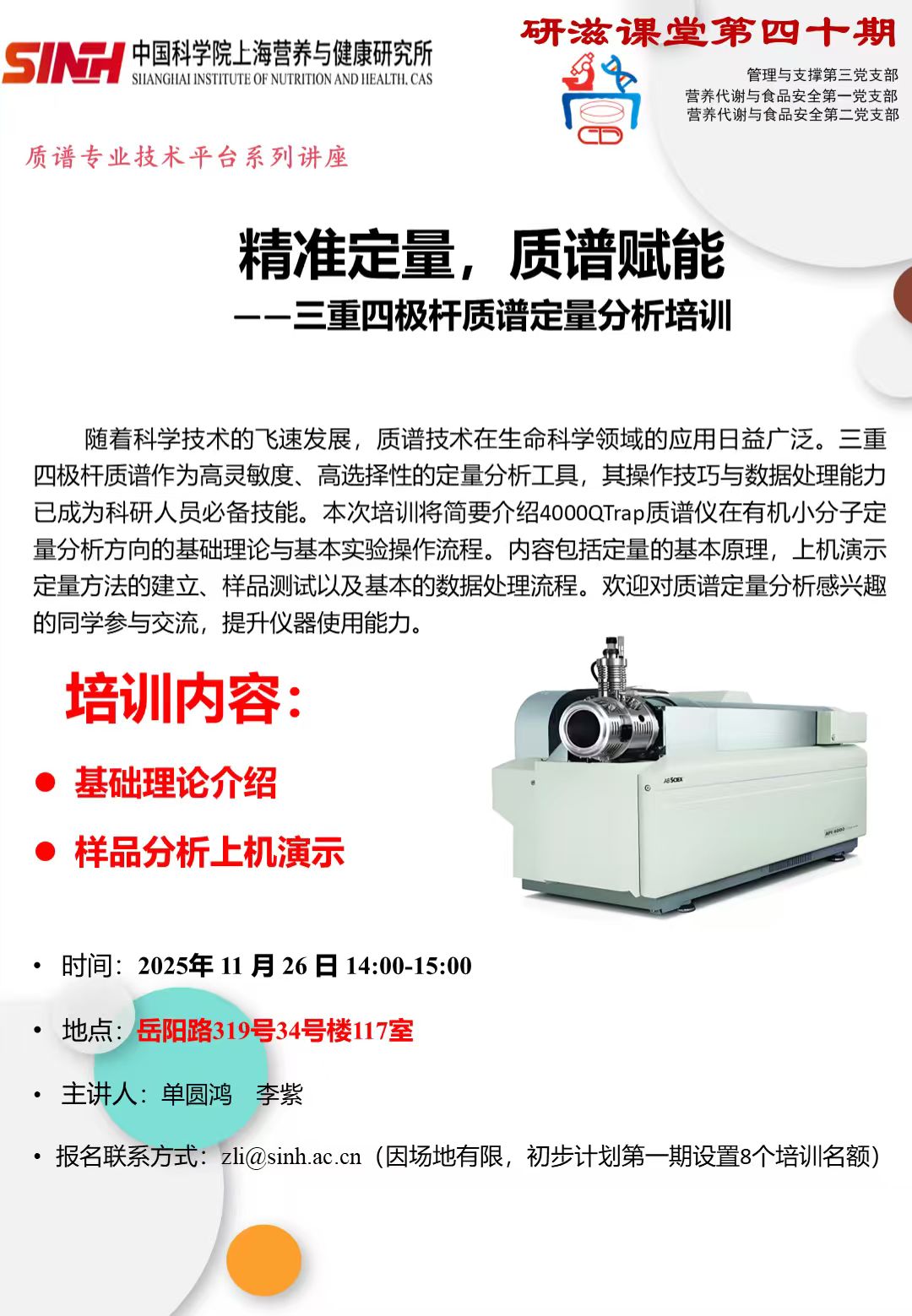 11月26日|精准定量,质谱赋能——三重四级杆质谱定量分析培训-研滋课堂