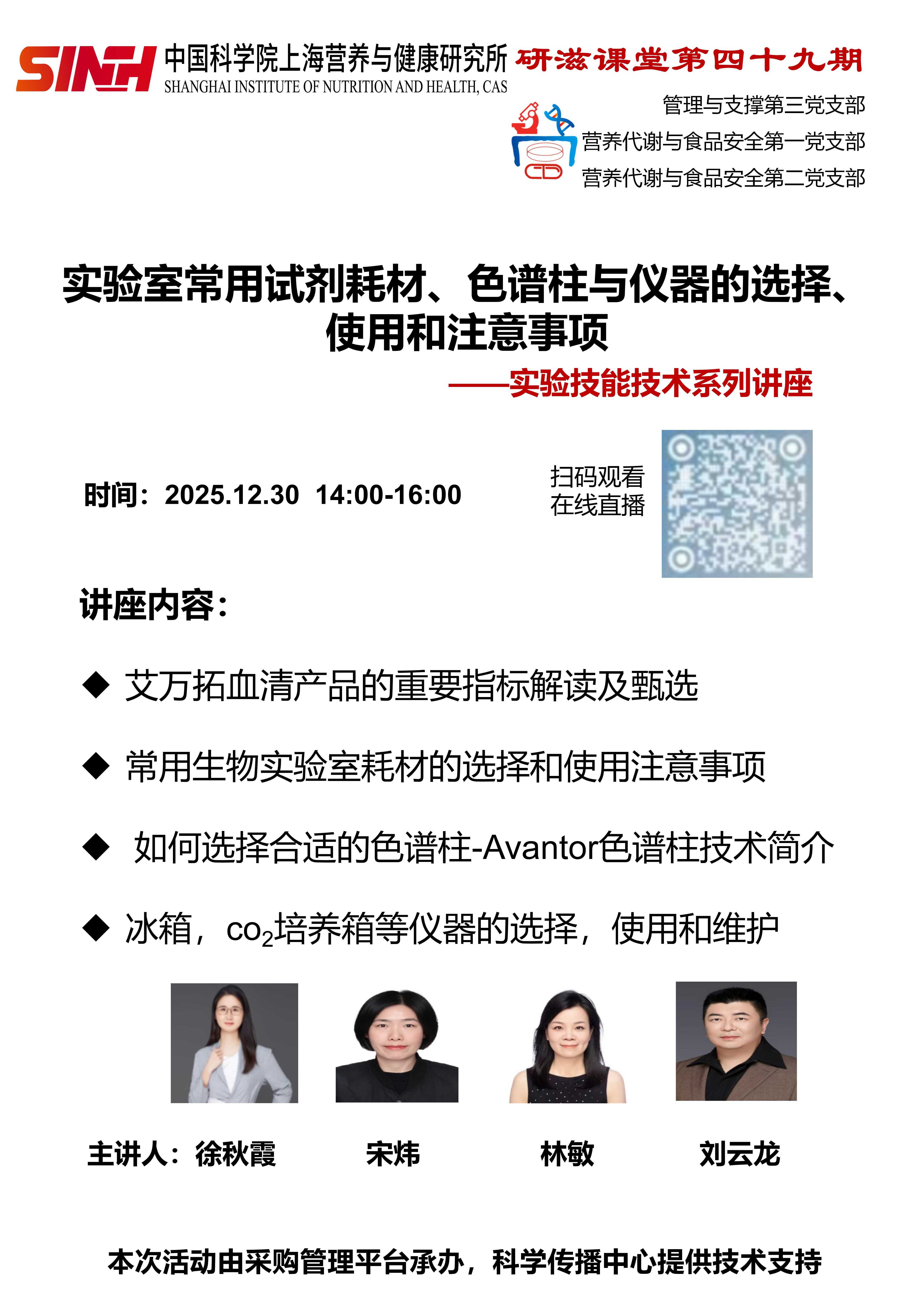 12月30日|实验室常用试剂耗材、色谱柱与仪器的选择、使用和注意事项-研滋课堂