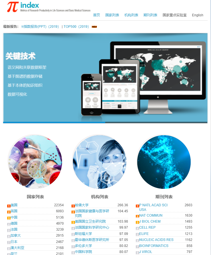 2019π指数年度报告PPT、TOP500机构列表和122种期刊列表详见π指数官网:http://bm.pi-index.com/