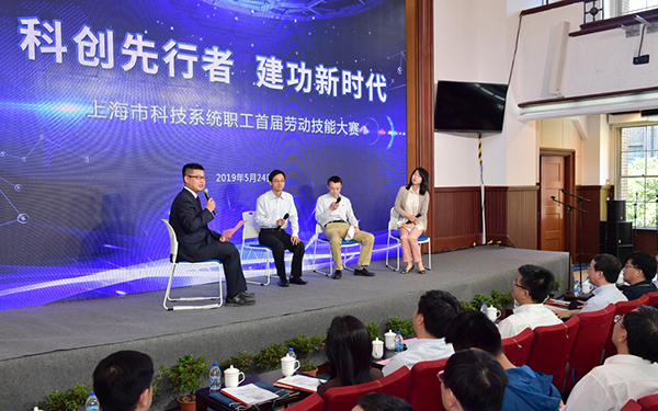 陈龙宣读了市科技系统2019年全国和上海市五一劳动奖状、奖章等的获奖名单。优秀创新成果奖特等奖获得者代表艾飞,上海医药工会副主席、大国工匠朱阳,上海工匠卢秋红团队代表等3位嘉宾围绕科技职工攻坚克难、追求卓越畅谈了感言。