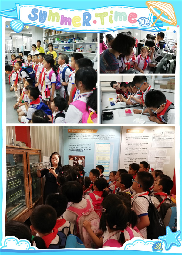 随后,全体师生又来到分子细胞卓越创新中心参观学习。在带队老师的引导下,分批次井然有序的参观了纪念人工全合成结晶牛胰岛素50周年展厅,感受老一辈科学家坚持不懈、艰苦奋斗、团结合作的精神;在细胞分析技术平台透过显微镜观察放大之后的昆虫标本和多彩的生物细胞;分子生物学技术平台的老师则为小朋友耐心讲解有关生物分子的知识,并指导他们用移液枪绘制“爱心”图案;参观化学分析技术平台的小朋友纷纷被快速运转的机械手臂所吸引,还时不时地与平台老师展开激烈的“讨论”,收获颇丰。