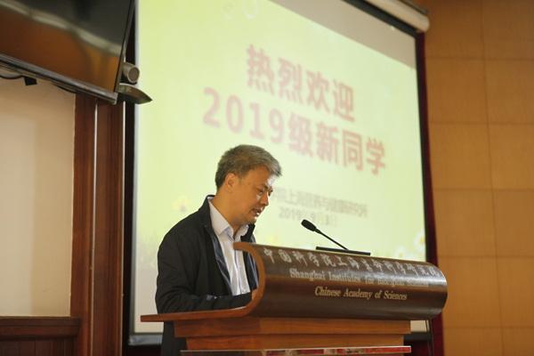 2019年9月3日,中国科学院上海营养与健康研究所2019级新生开学典礼在生理大楼报告厅隆重举行。营养与健康所李林院士,导师代表杨黄恬、邱菊研究员,综合管理处周建国,信息中心沈东婧以及全体新生出席本次典礼??У淅裼裳芯可勘∠榛壑鞒?。