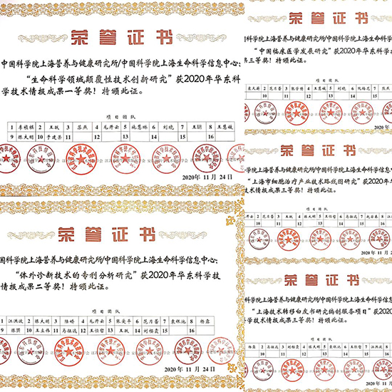 2020年11月24日,中科院上海营养与健康研究所情报研究团队的5项课题成果在华东地区六省一市科技情报学会组织的评奖活动中再创佳绩,为我所的科技情报成果续写新章。其中,“生命科学领域颠覆性技术创新研究”课题成果获2020年度“华东地区科学技术情报成果奖”一等奖;“体外诊断技术的专利分析研究”课题成果获2020年度“华东地区科学技术情报成果奖”二等奖;“中国临床医学发展研究”“上海技术转移白皮书研究编制服务项目”“上海市细胞治疗产业技术路线图研究”等课题成果获2020年度“华东地区科学技术情报成果奖”三等奖。上述成果适应科技创新变革新时期与新形势的要求,促进了我所科技情报成果的推广与交流。