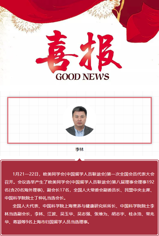 【喜报】李林当选欧美同学会(中国留学人员联谊会)副会长