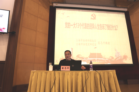 会议特邀中共上海市委党史研究室研究员、上海党建文化研究中心特聘研究员、上海市委党史学习教育专家宣讲团成员袁志平作《党大一大13个代表的迥异人生告诉了我们什么?》主题报告。报告理论联系实际、历史与现实相结合,用鲜活生动的案例、可歌可泣的史实,剖析了中共一大13个代表迥异人生所体现出的“艰苦卓绝,中国社会革命艰苦卓绝的基本特征”、“金钱权力,拷问人性的两大基本问题”、“道路曲折,迷途知返方才是人间正道”、“信仰坚定,方显共产党人的英雄本色”等党史特征和人生启示。
