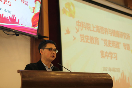 4月28日上午,中科院上海营养与健康研究所召开“学史明理”专题党员集中学习教育。研究所领导班子、“两委”委员、所务会成员、各党支部(总支)书记、科研骨干、职能部门负责人、党团员青年等约200人参加学习?;嵋橛傻澄彼锏现鞒?。