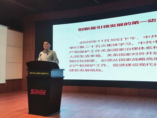 会上,信息中心第二党支部书记陈大明做了《历史·知识·产权》专题学习报告。他从“透过历史看知识产权的发展”“回顾党史看运用知识的能力”“展望未来看激励创新的实践”三个板块讲述了知识产权的起源,我国的知识产权的立法过程,以及未来创新环境中知识产权全链条的创新治理等思考。在学习总结中,蔡澎书记发言指出,要以史为鉴、以史为师,了解、熟悉知识产权的“游戏规则”与全球竞争中的经验教训,在中国融入全球创新网络的过程中打造国际知识产权高地,最终获得科技的自立、自强与自信。