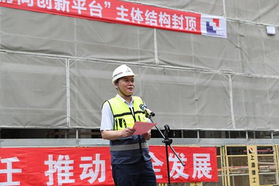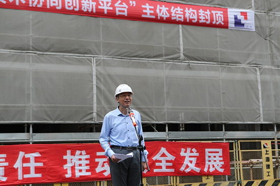 施工总包单位上海建工七建集团有限公司副总裁石刚代表参建单位发言,他感谢各级领导和营养与健康所的信任,表示将全力保障并服务好本项目的后续建设工作。