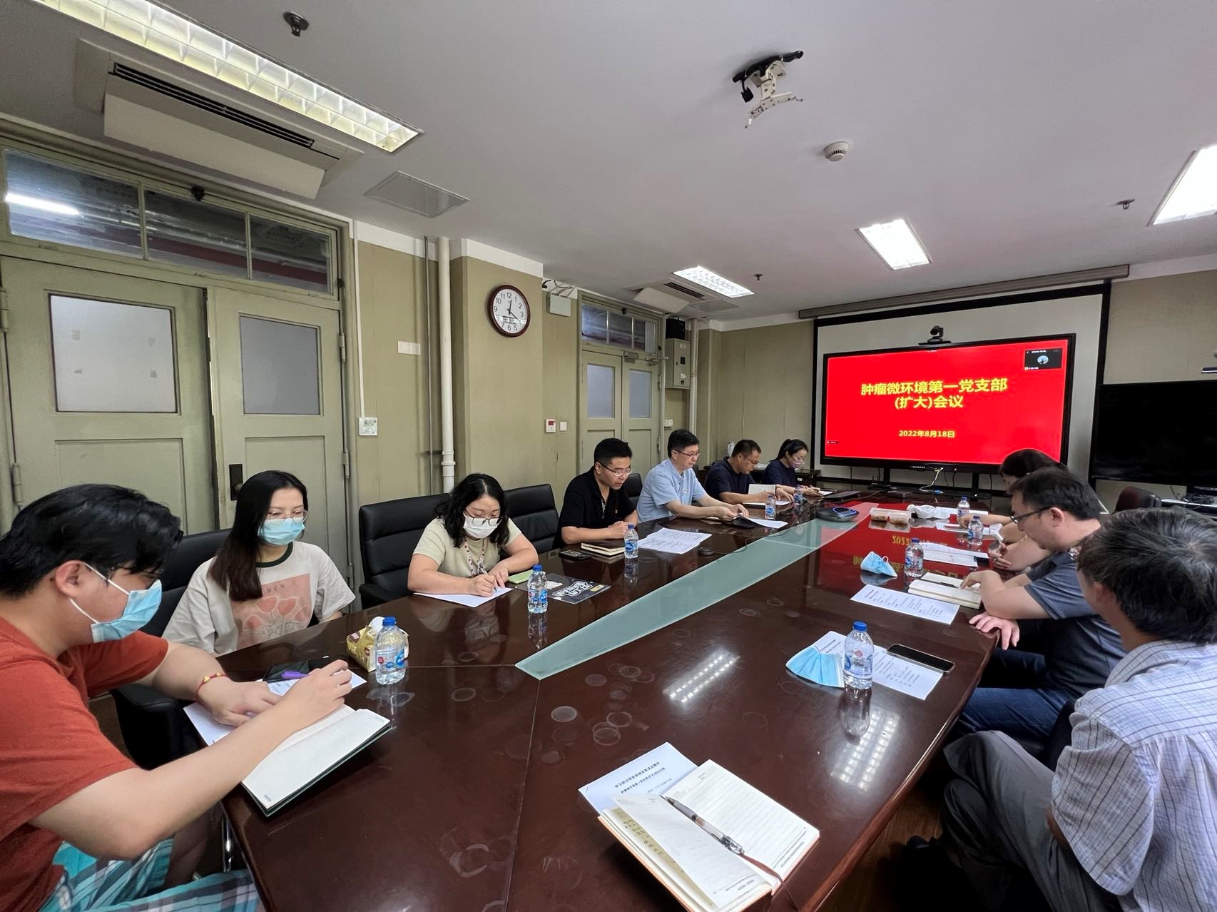 8月18日下午,肿瘤微环境第一党支部采取线上线下相结合的形式召开了支部党员大会,及时传达院党组2022年夏季扩大会议精神,学习研讨研究所领导体制改革试点工作部署要求。党委书记瞿荣辉、党委办公室负责人等应邀出席会议,肿瘤微环境第一党支部所辖课题组组长以及全体党员30余人参加了会议,会议由党委委员、肿瘤微环境第一党支部书记王跃祥研究员主持。