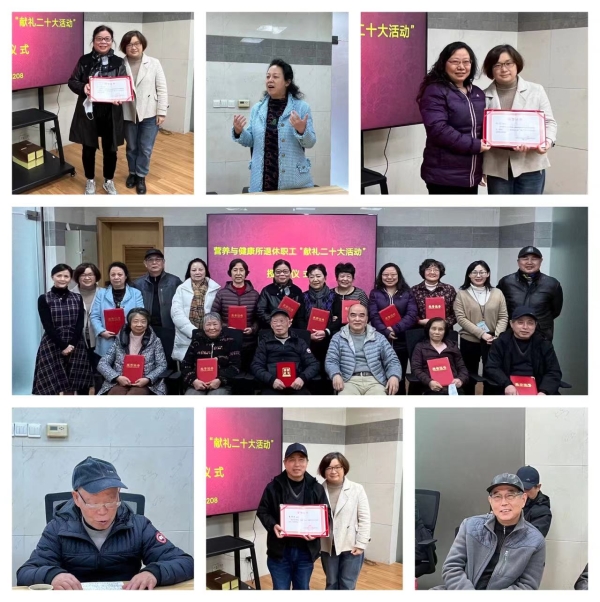 12月8日,营养与健康所举办退休职工“喜迎二十大系列活动”授奖仪式,获奖退休职工、退休支部书记等20多人参加了仪式。