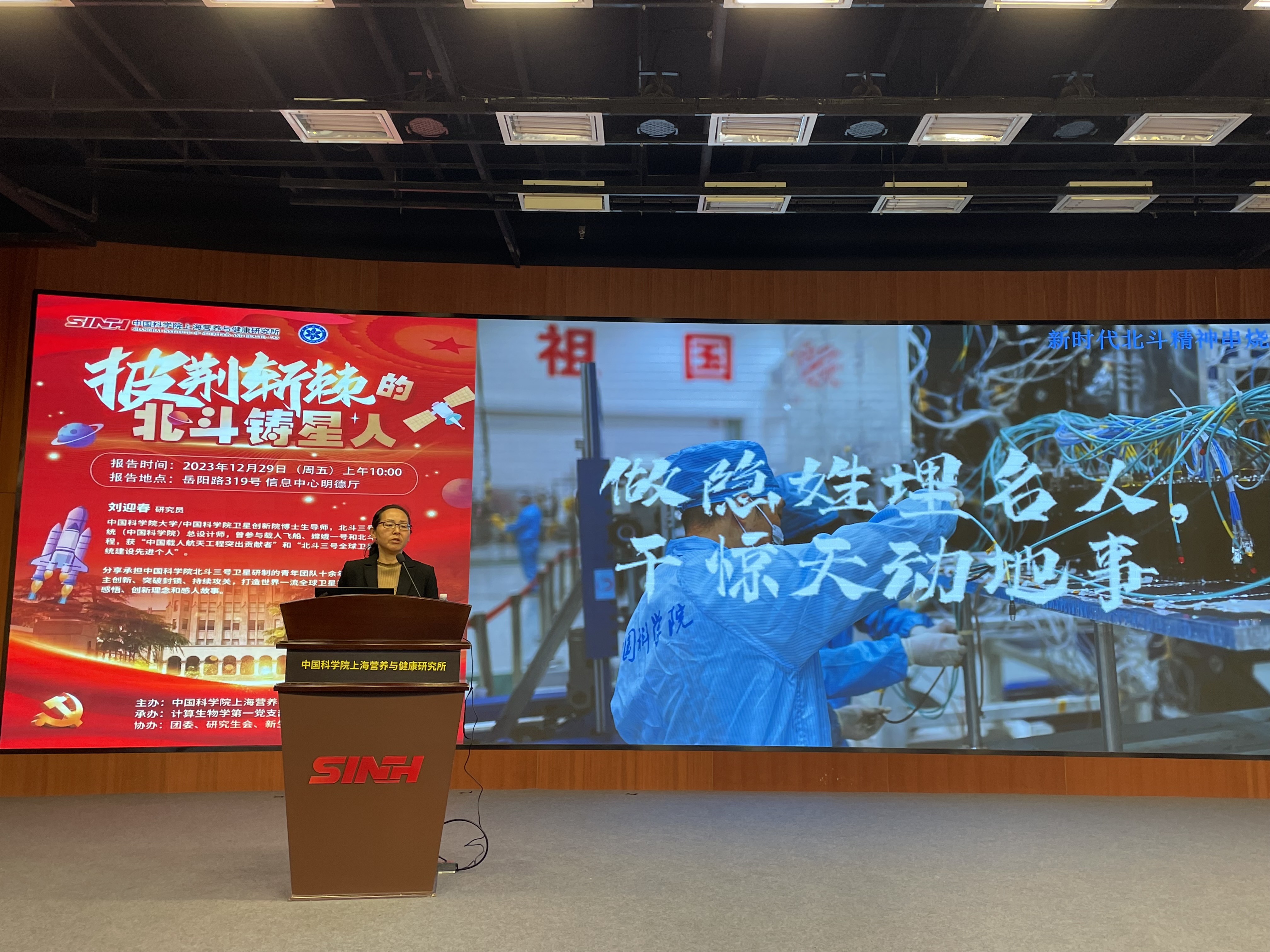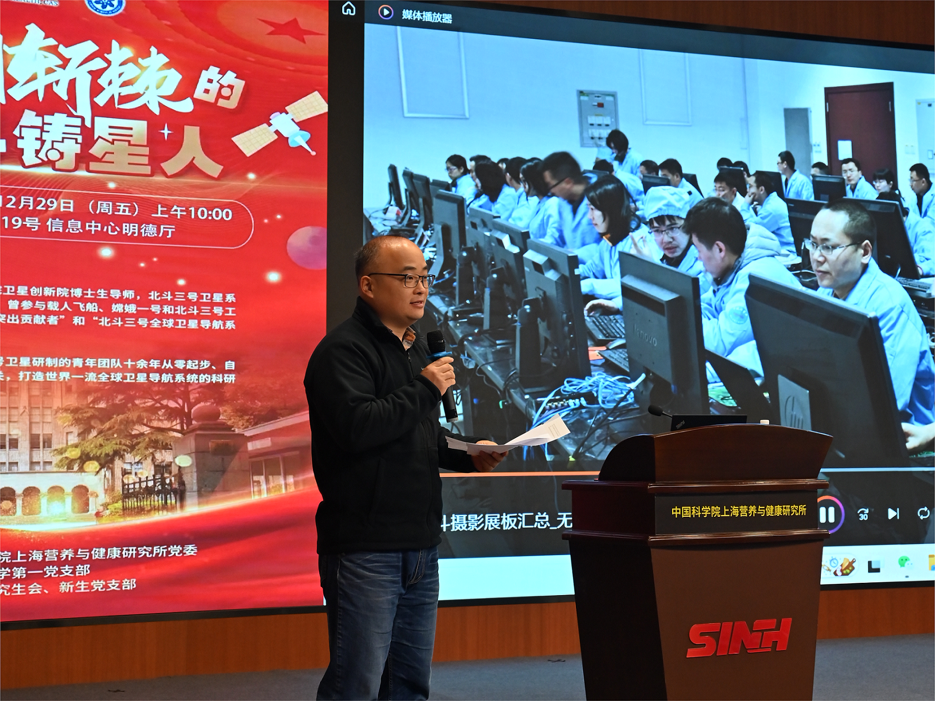 为深入学习贯彻中国科学院2024年度工作会议精神,进一步树立抢占科技制高点意识,12月29日,由中国科学院上海营养与健康研究所党委主办、计算生物学第一党支部承办的弘扬科学家精神主题报告会在明德厅举行。中国科学院大学博士生导师、北斗三号卫星系统(中国科学院)总设计师刘迎春研究员作《披荆斩棘的北斗铸星人》专题报告,研究所各党支部师生近百人参加活动,报告会由所务委员邵振研究员主持。