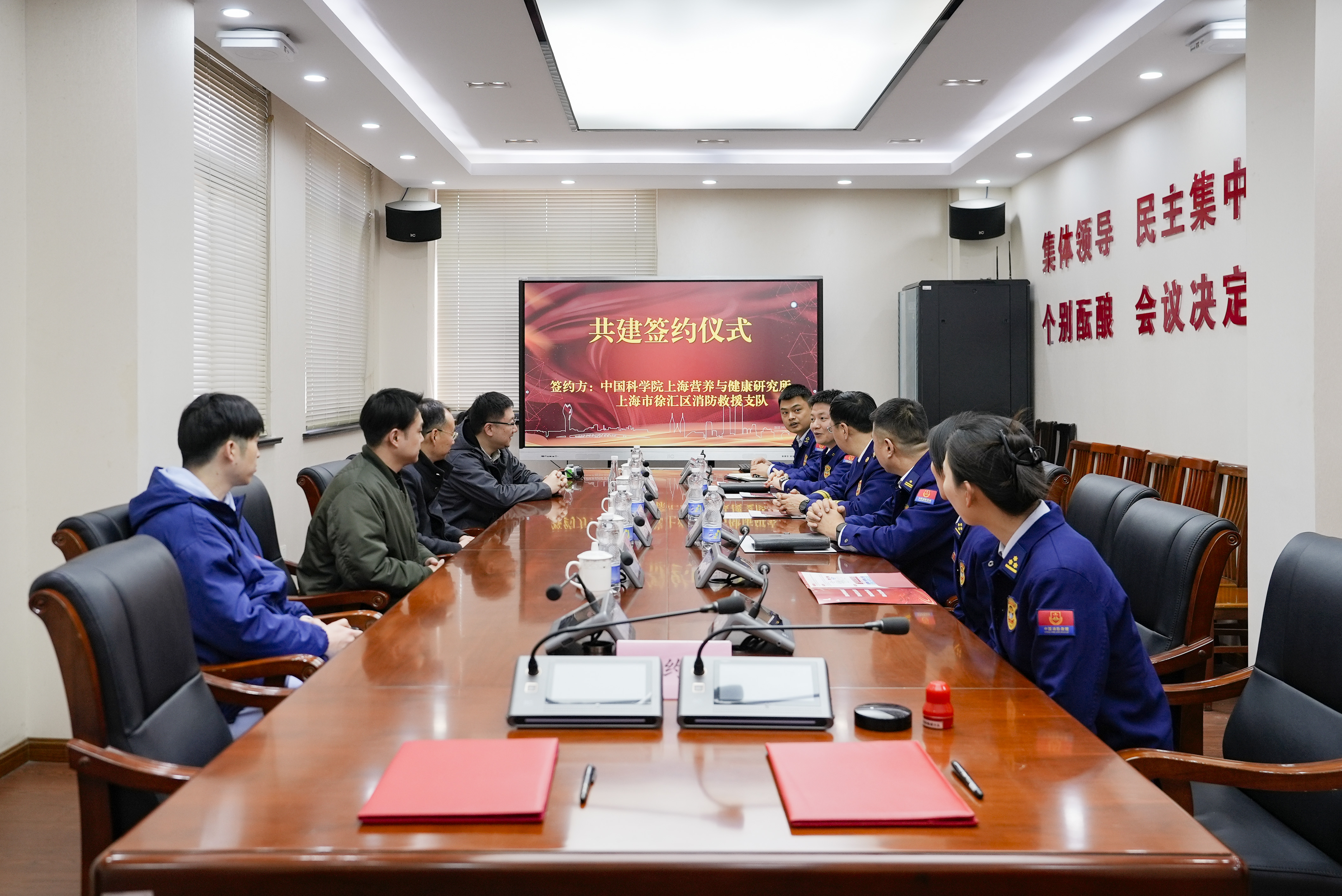 签约仪式上,索华伟和曹永分别介绍了各自单位的整体工作情况。双方结合工作实际,探讨成立共建领导小组统筹推进共建工作,并就联防共管网络建设、消防管理模式优化、参观访问、学习培训、业务指导互助等方面进行了充分交流。与会人员表示,希望充分依托徐汇区消防救援支队在应急救援、风险防治等方面的专业能力和营养与健康所在重大慢病防控与老龄健康促进领域基础与应用基础研究实力,优势互补,互促共赢,以“国家队”“国家人”的使命感共同守护人民生命健康安全,助力高质量发展加速推进。