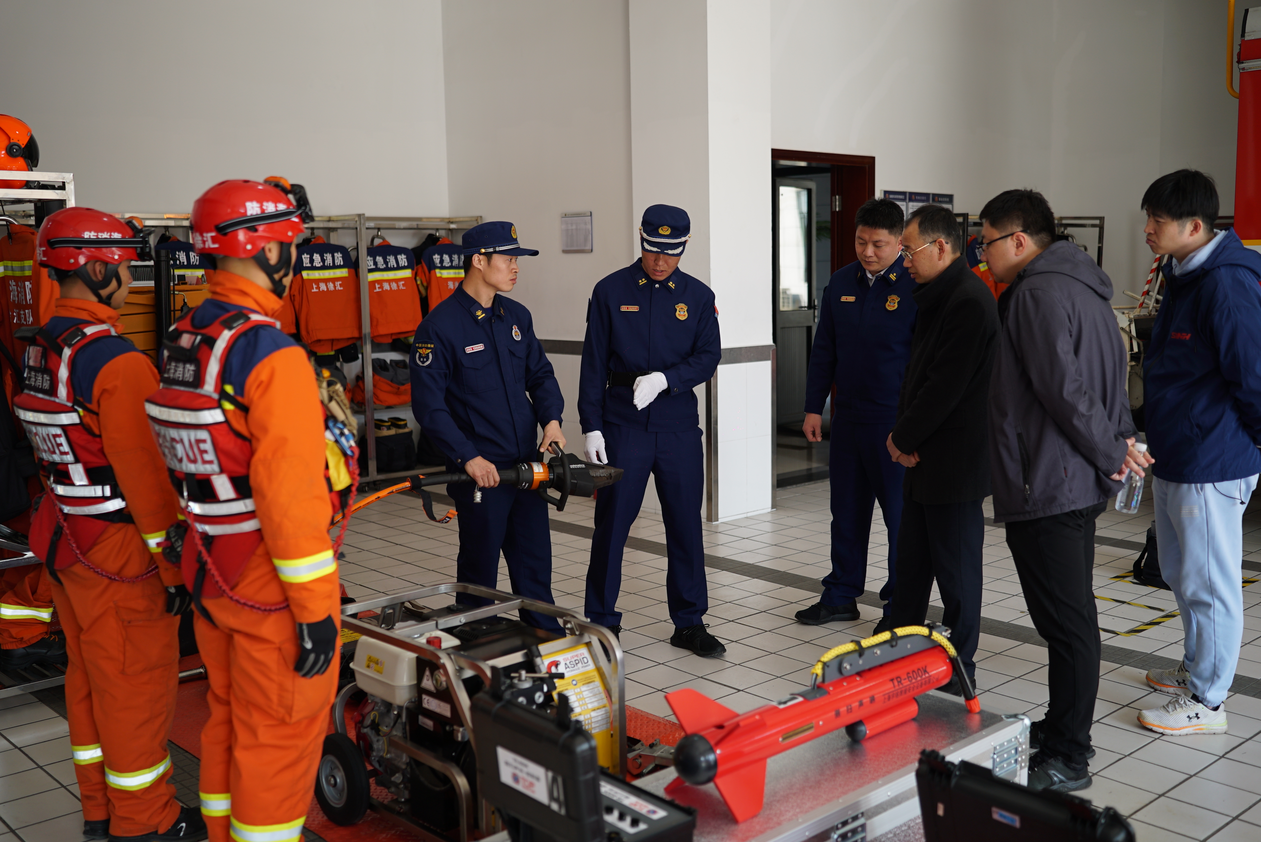 本次活动中,徐汇区消防救援支队带领营养与健康所人员观摩了消防训练,并对消防装备及设备进行了讲解示范。
