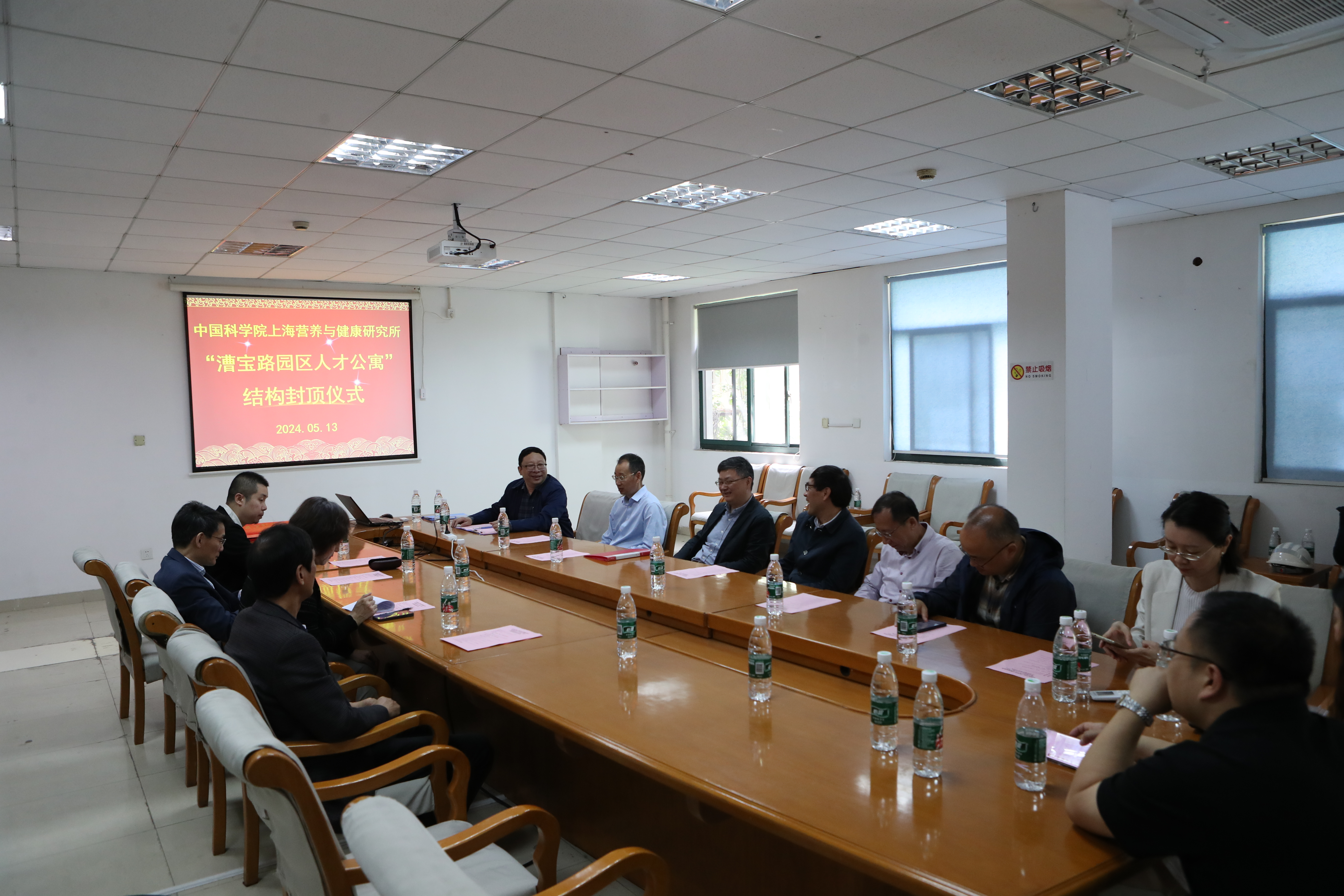 5月13日上午,中国科学院上海营养与健康研究所在漕宝路园区举行“漕宝路园区人才公寓”主体结构封顶暨项目推进会。研究所党委书记瞿荣辉,纪委书记曹永,党委委员、所务委员汪为军,所务委员邵振,研究所老领导汤伯伟、廖侃,以及营养与健康所职能部门负责人和在读研究生代表,各参建单位领导和职工代表等共计60余人出席会议?;嵋橛裳芯克ò旃抑魅?、基建工作小组副组长黄继锋主持。