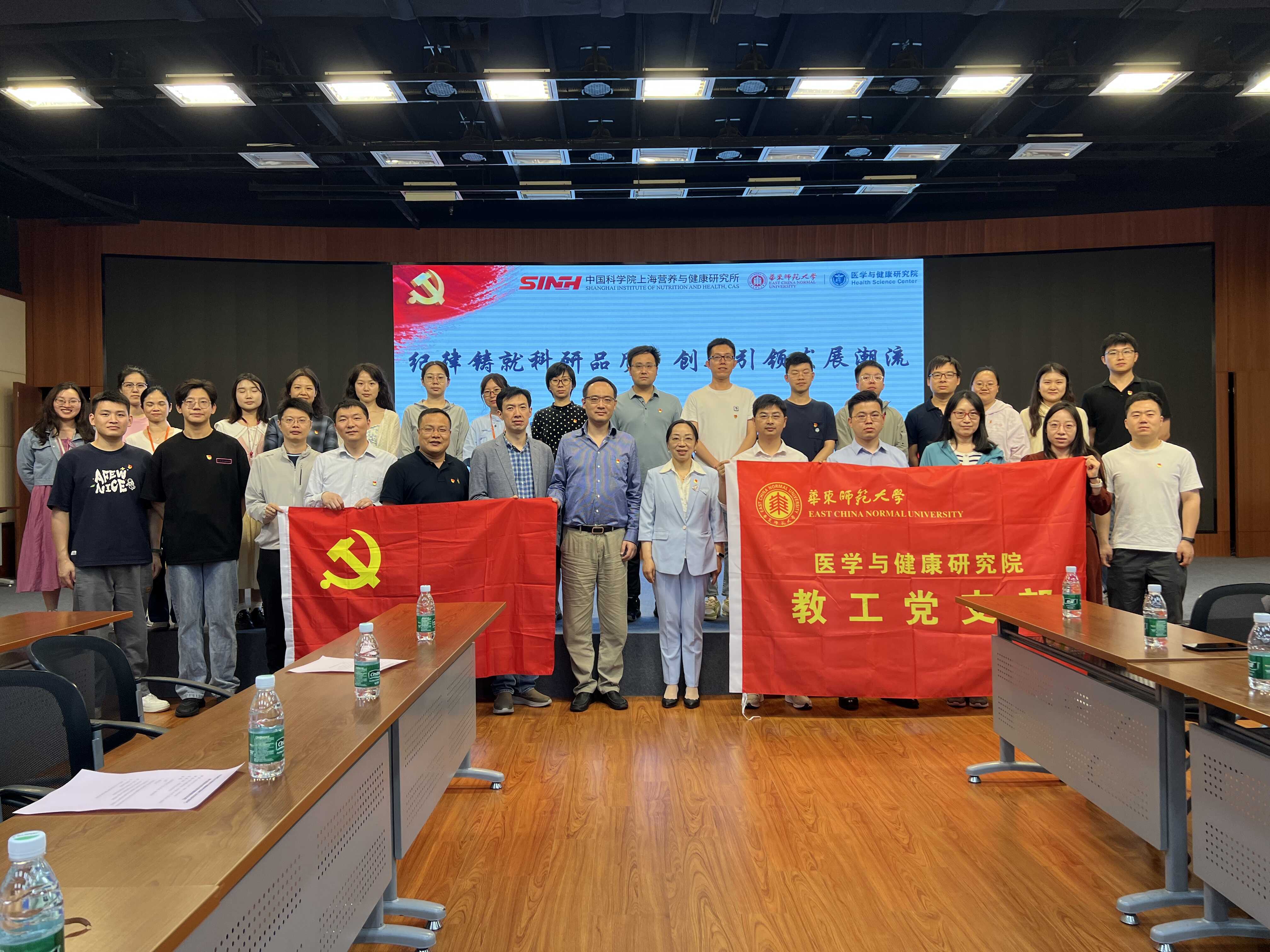 在科研交流座谈中,双方支部代表分别介绍了各自的基本情况与支部建设进展。徐敏华详细介绍了华东师范大学的发展历程、学科建设、医学与健康研究院总体情况与发展目标;应浩对营养与健康所概况及科技制高点的行动目标与规划作了全面阐述。此外,华东师范大学药学院副教授朱书雷也分享了药学院在科学研究与人才培养方面的基本情况。