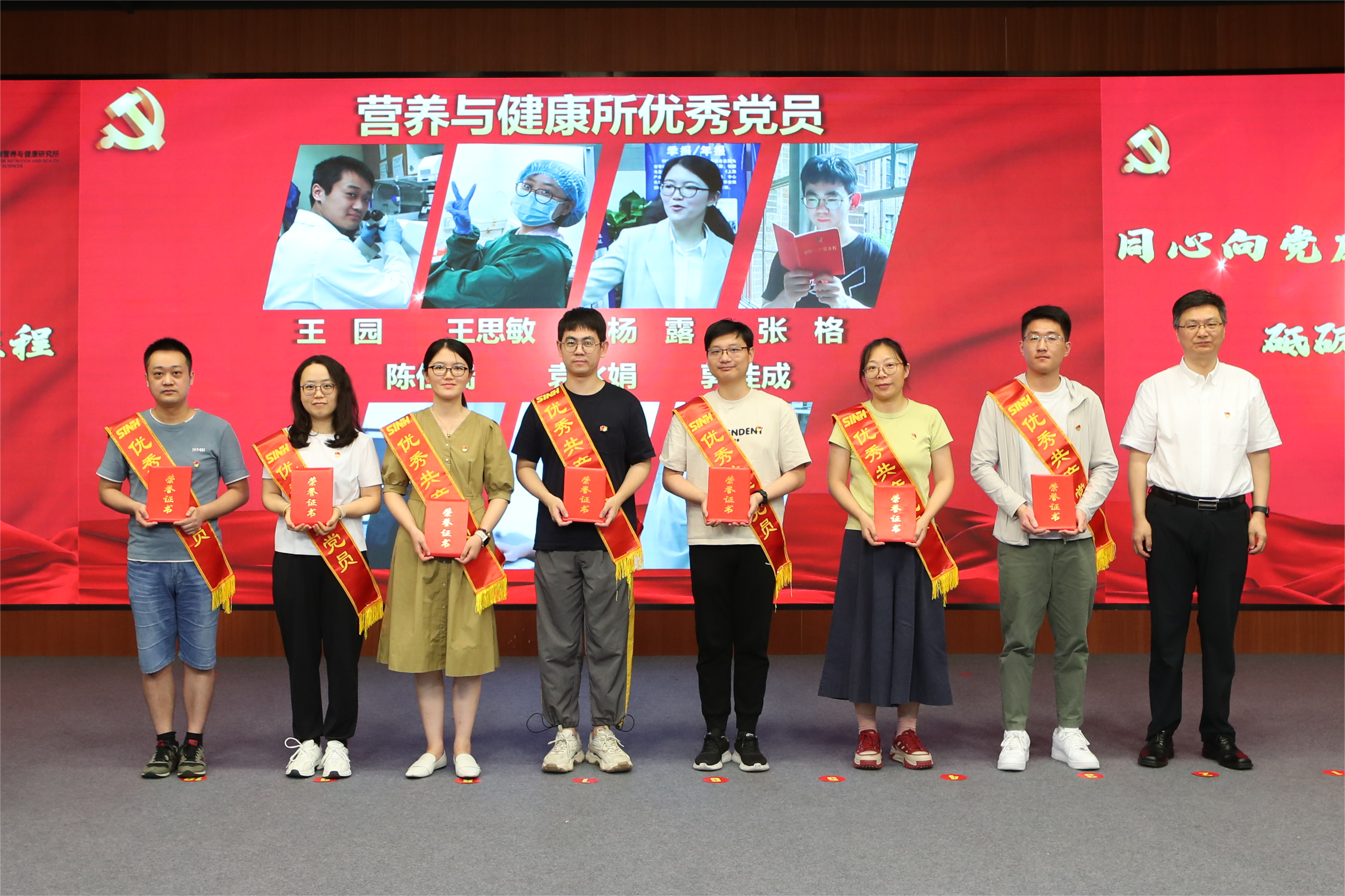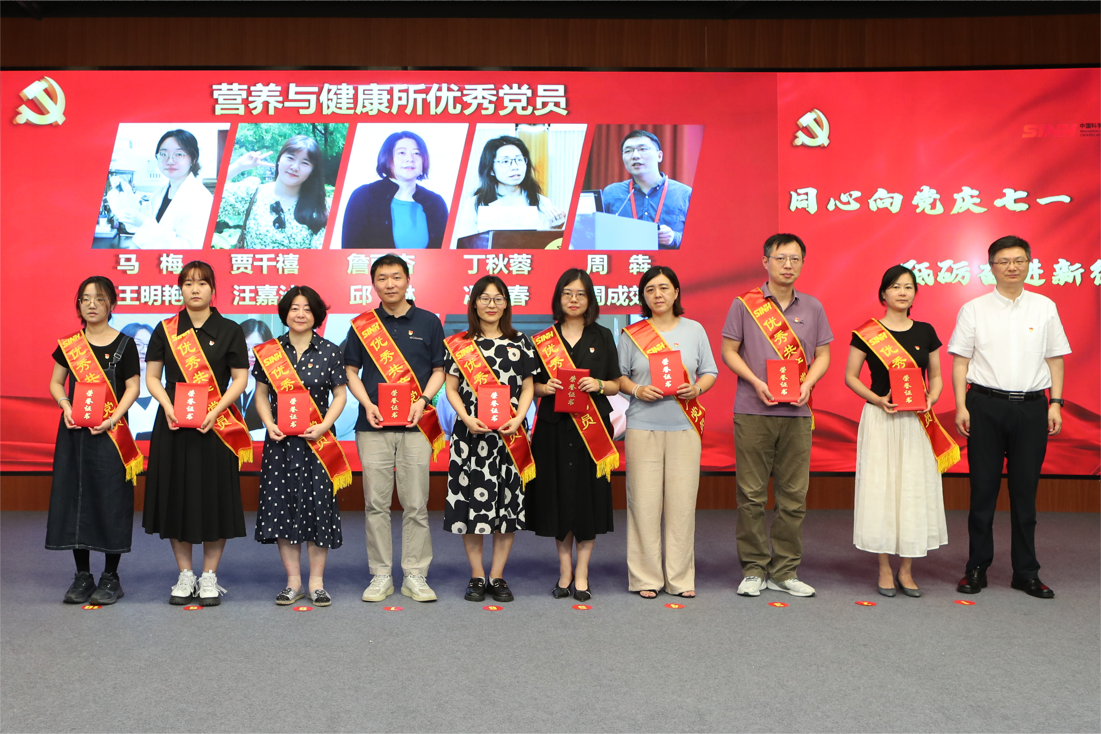 7月16日下午,为庆祝中国共产党建党103周年,深入学习贯彻习近平新时代中国特色社会主义思想,认真落实好党建工作主体责任,扎实推进党纪学习教育,中国科学院上海营养与健康研究所党委组织召开“同心向党庆七一·砥砺奋进新征程”党建工作交流会暨党纪学习教育推进会。中国科学院上海分院党建督导组组长郏静芳、党建工作处(纪检办公室)薛芳应邀出席会议。营养与健康所党委书记瞿荣辉、纪委书记曹永以及研究所“两委”委员、受表彰人员、基层党组织负责人等70余人参加会议?;嵋橛刹苡乐鞒?。