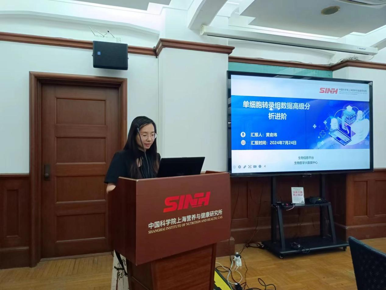 7月24日下午,中国科学院上海营养与健康研究所所级科学数据中心举办了“单细胞转录组数据高级分析进阶”培训,旨在帮助科研人员了解和掌握相关技术和工具,以提升自身生物信息分析能力。本次培训由中心资深工程师黄俞玮担任主讲人,其研究方向为生物信息学大数据分析和流程搭建,目前主要负责单细胞及空间转录组方向的分析工作。