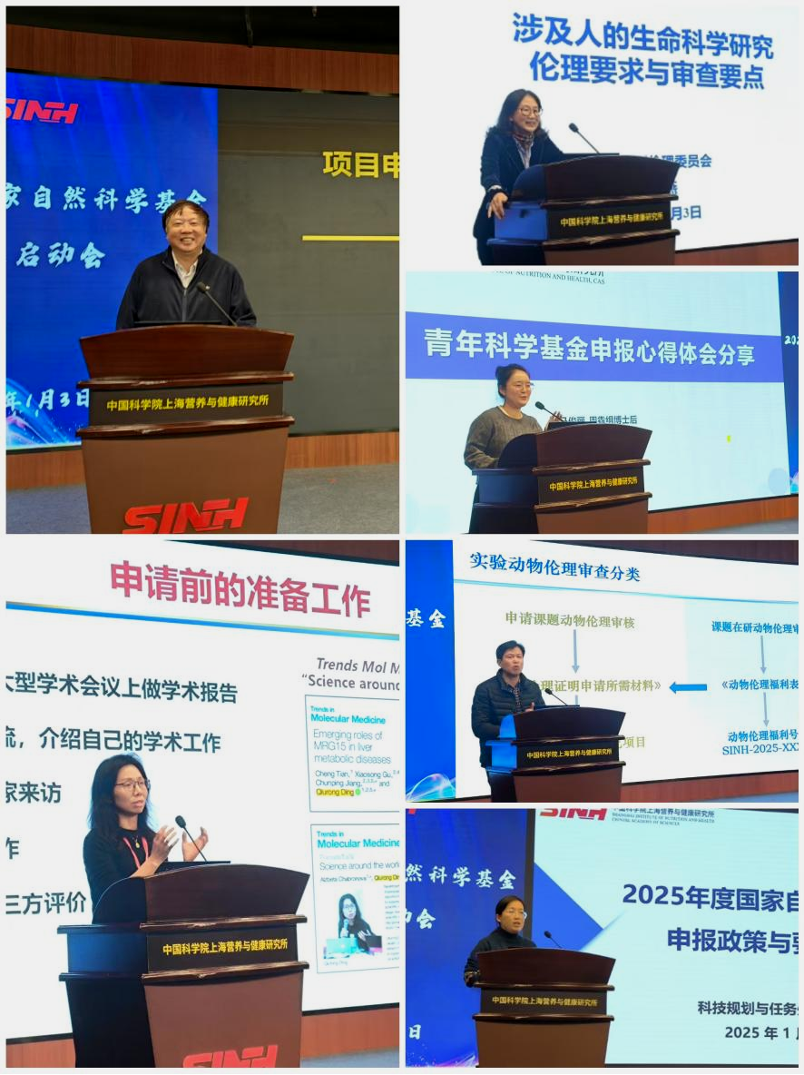 1月3日,中国科学院上海营养与健康研究所2025年度国家自然科学基金申报启动会在明德厅顺利召开。此次会议旨在贯彻习近平总书记关于加强基础研究工作系列指示批示精神,落实中国科学院党组关于抢占科技制高点的重要部署,深入推进“基础研究十条”的实施,高质量组织推进国家自然科学基金项目申报。研究所学术带头人、副研究员、博士后等百余人参会。会议由研究所科技规划与任务处副处长(主持工作)薛珂雯主持。