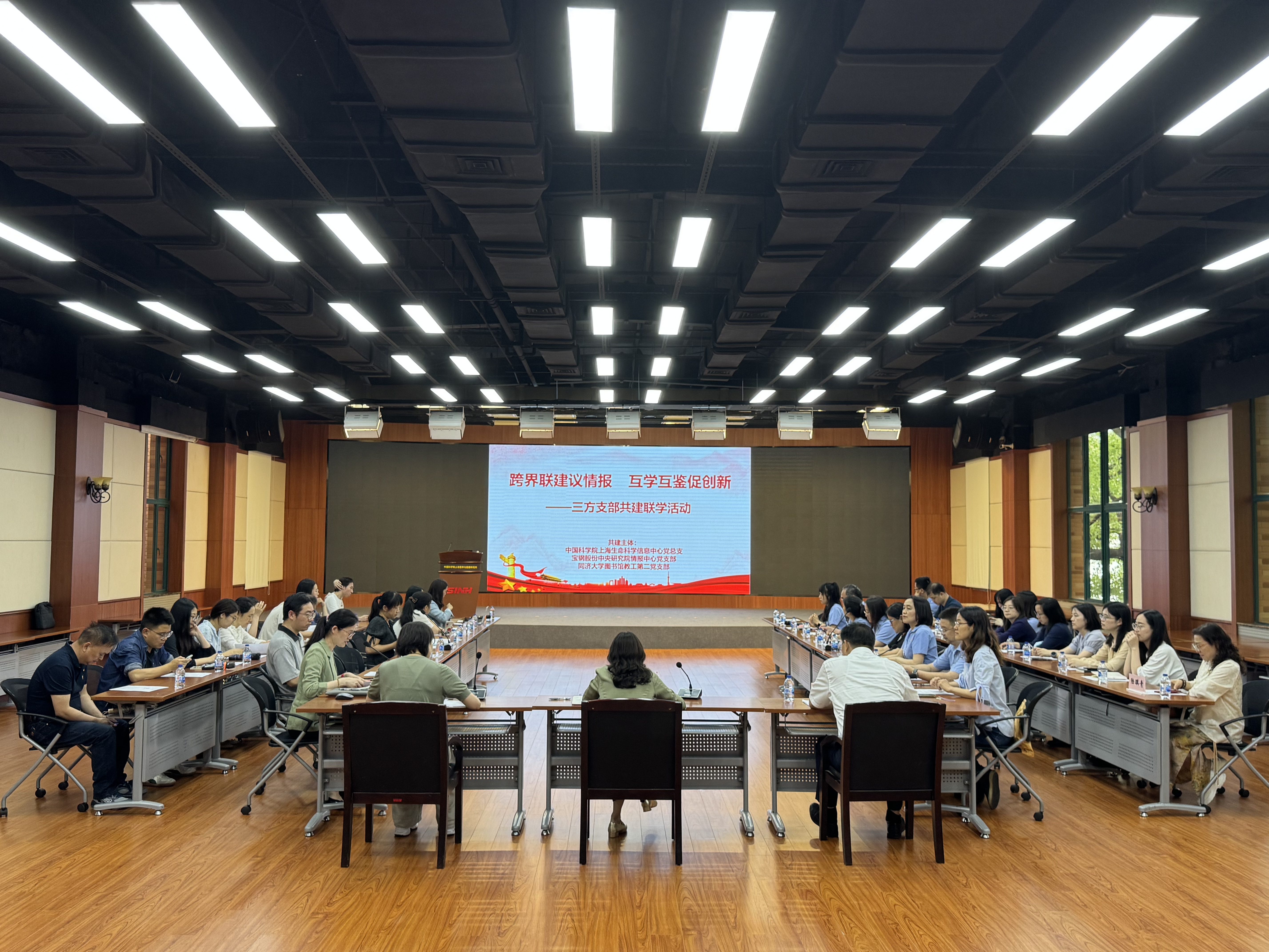 为提高支部党员思想站位,增强业务能力,6月13日下午,中国科学院上海营养与健康研究所信息中心党总支、宝钢股份中央研究院情报中心党支部、同济大学图书馆教工第二党支部在信息中心明德厅联合举办了主题为“跨界联建议情报 互学互鉴促创新”的共建联学活动,上海图书馆(上??蒲Ъ际跚楸ㄑ芯克┬鞲ǖ即Φ持Р苛邢渭?span style="font-family: arial, helvetica, sans-serif; font-size: 16px; margin-top: 8px; line-height: 2em;" data-index="9">此次活动。活动吸引了40余名党员同志参与。与会单位以党建为纽带,深入贯彻中央八项规定精神学习教育,聚焦科技情报赋能创新发展交流工作思路与实践经验。信息中心党总支书记熊燕、宝钢股份中央研究院情报中心主任陈秋建等出席此次活动?;疃尚畔⒅行牡诙持Р砍邪欤匙苤Ц笔榧巧蚨褐鞒?。