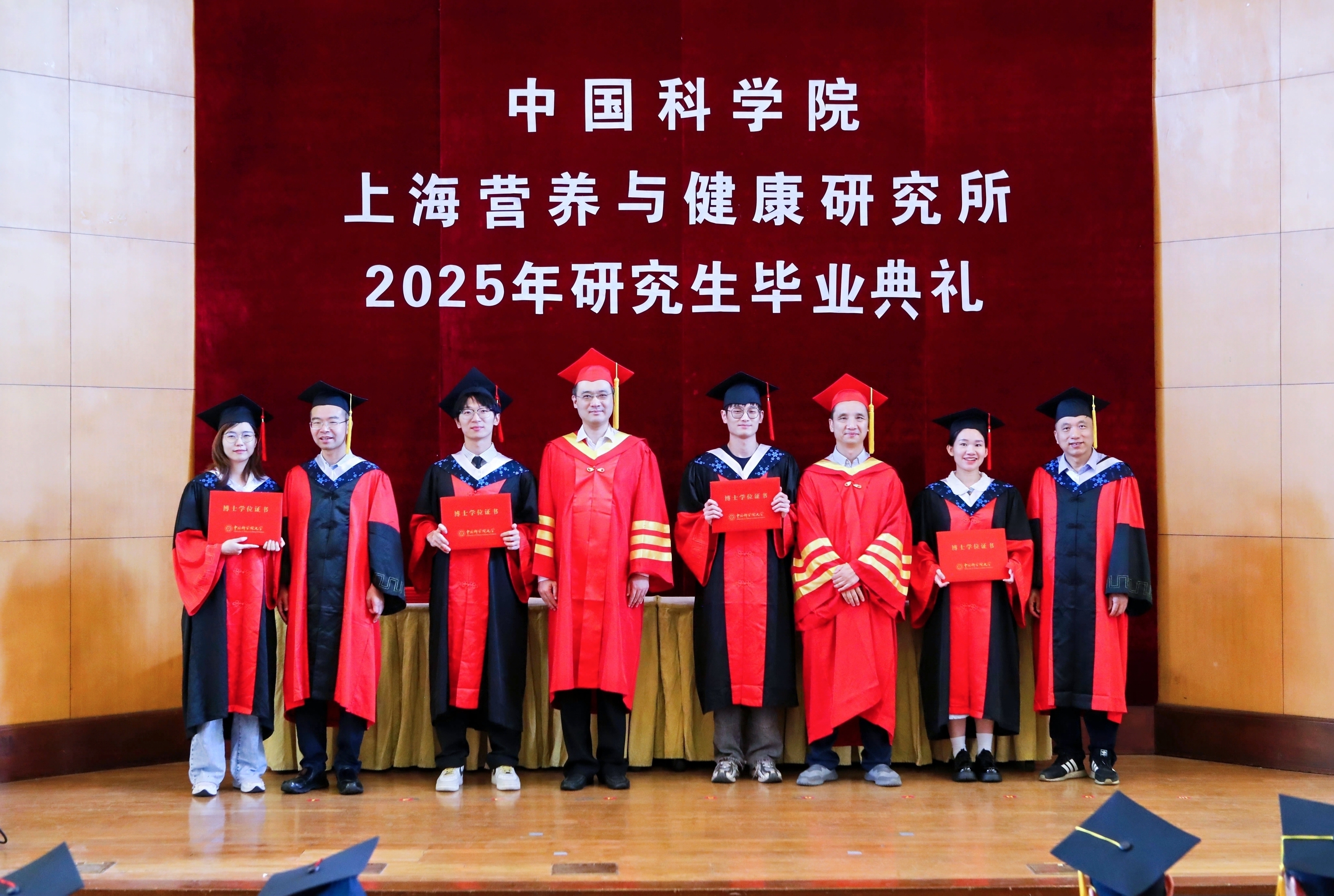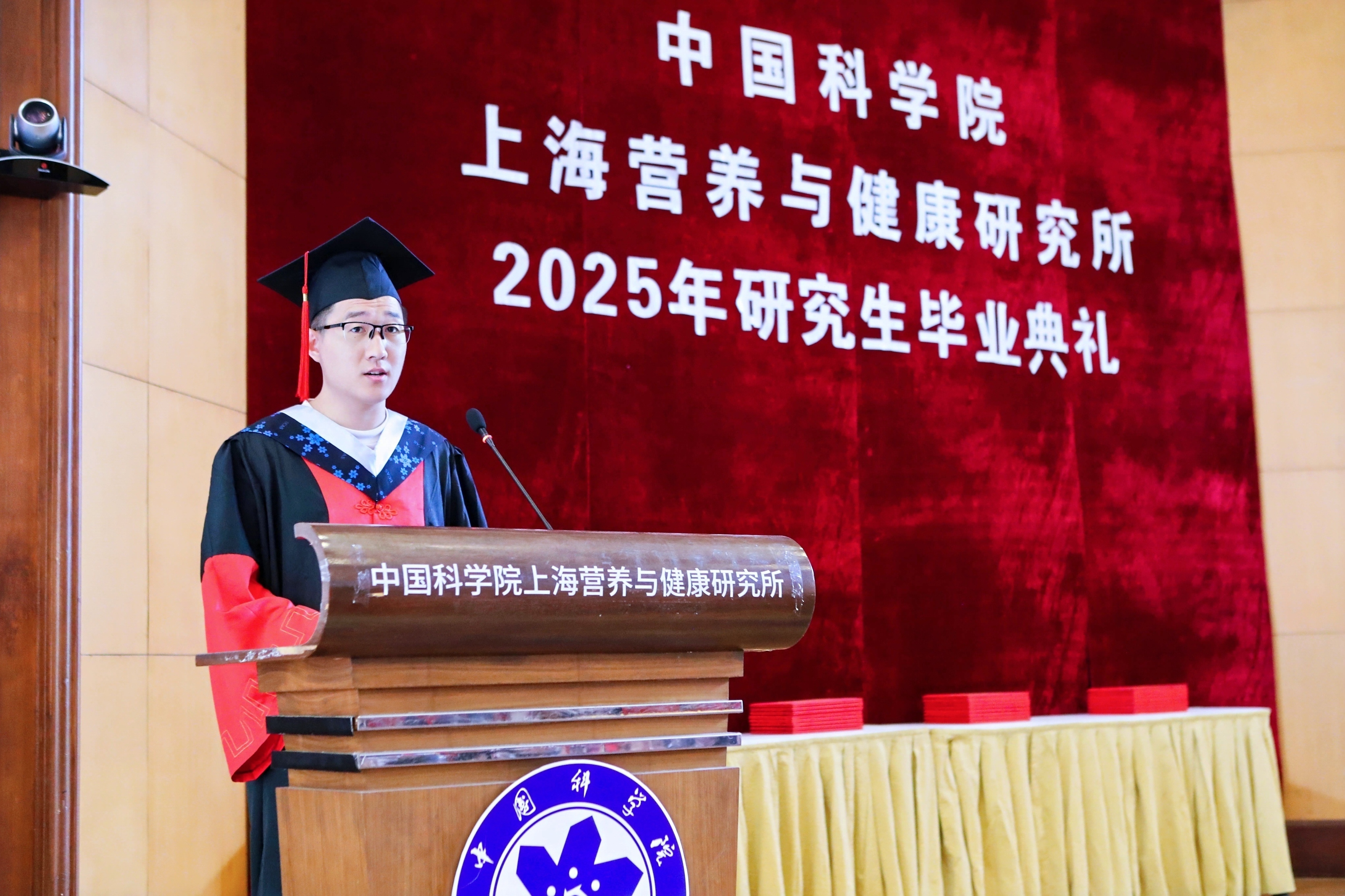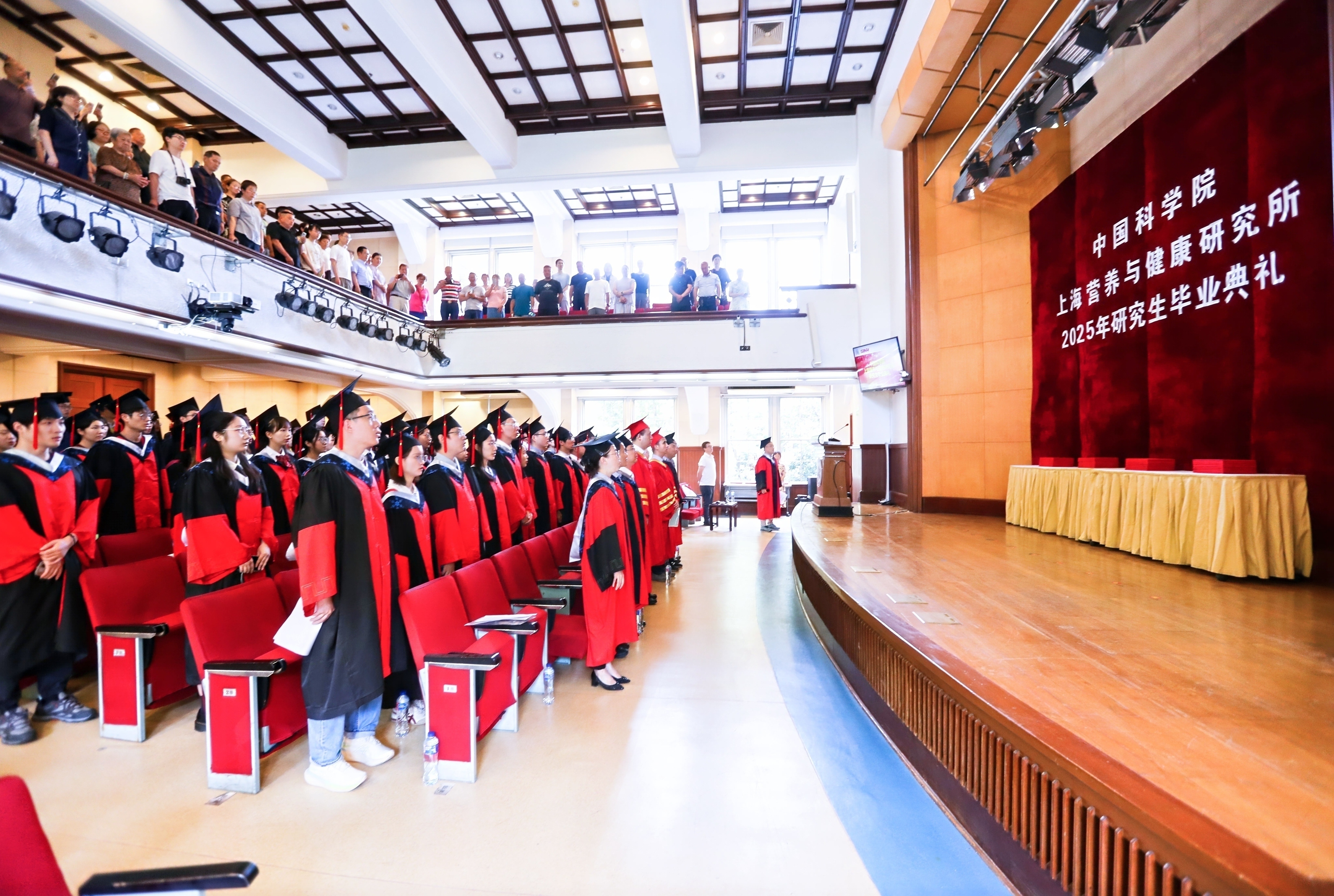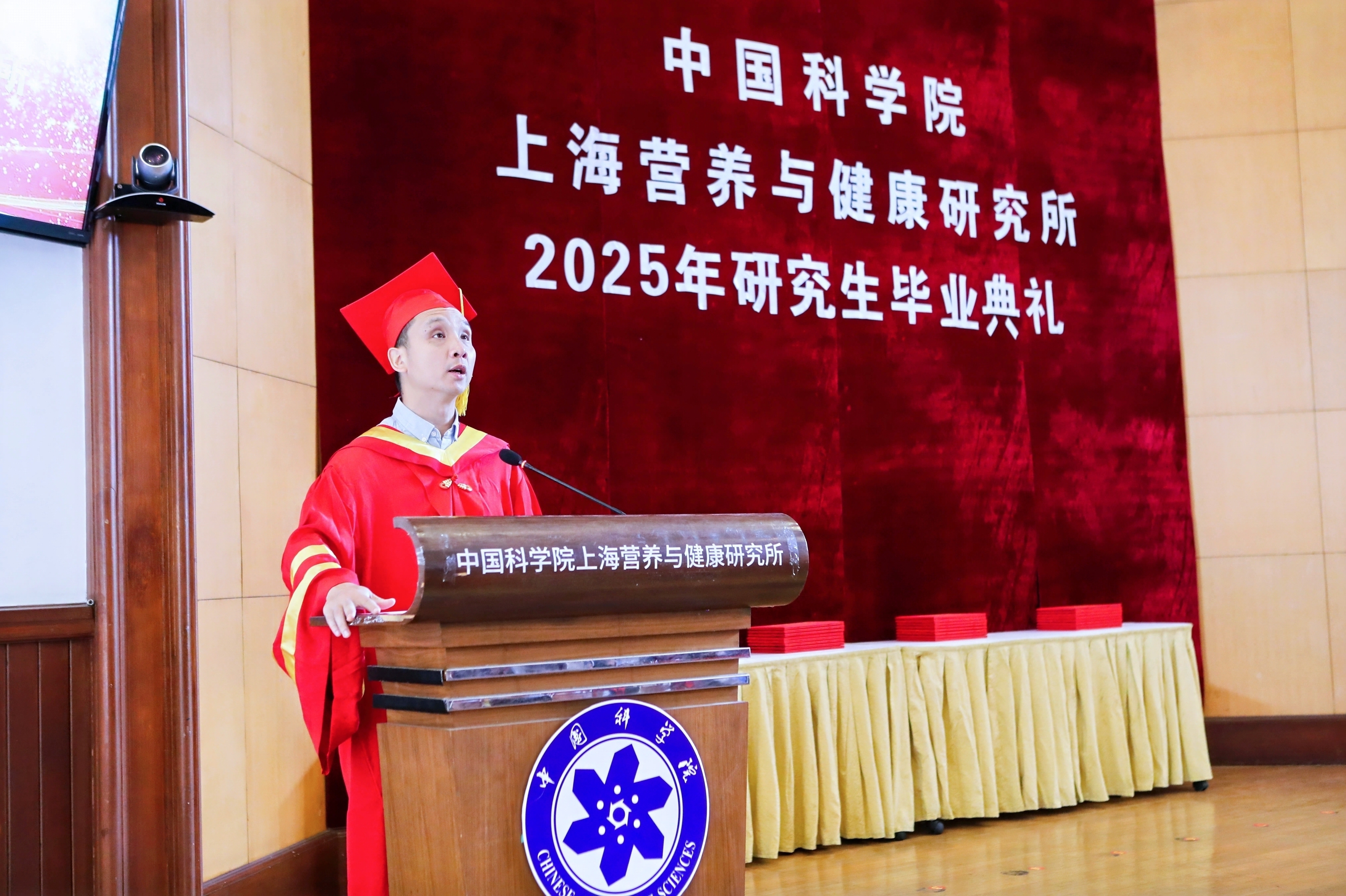 6月20日,中国科学院上海营养与健康研究所2025年研究生毕业典礼在生科大楼报告厅举行。营养与健康所所长、党委副书记汪思佳,副所长、学位评定委员会主席胡国宏,所务委员、学位评定委员会副主席邵振,学位评定委员会委员孔祥银、王跃祥,导师代表熊燕、黄涛、王振,2025届毕业生与毕业生亲友、研究生处教育管理干部等100余人齐聚一堂,共同参与了这一盛典。毕业典礼由邵振主持。