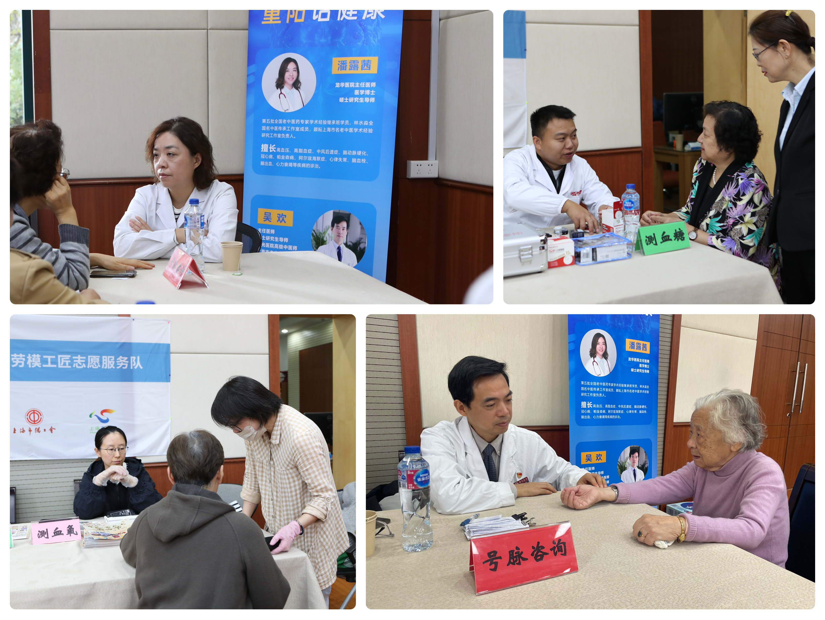 此次活动特别设置了“重阳话健康”爱心服务环节,将关怀落到实处。研究所特邀上海龙华医院潘露茜主任医师与曙光医院吴欢主任医师为老同志提供专业的中医号脉与健康咨询,耐心解答各类养生保健问题。上?;洗笠┓坑邢薰尽袄湍9そ持驹阜穸印币?/span>友情支持,提供了免费的血糖、血压和血氧检测服务。老同志们根据自身需求有序参与,现场秩序井然,温情流淌。