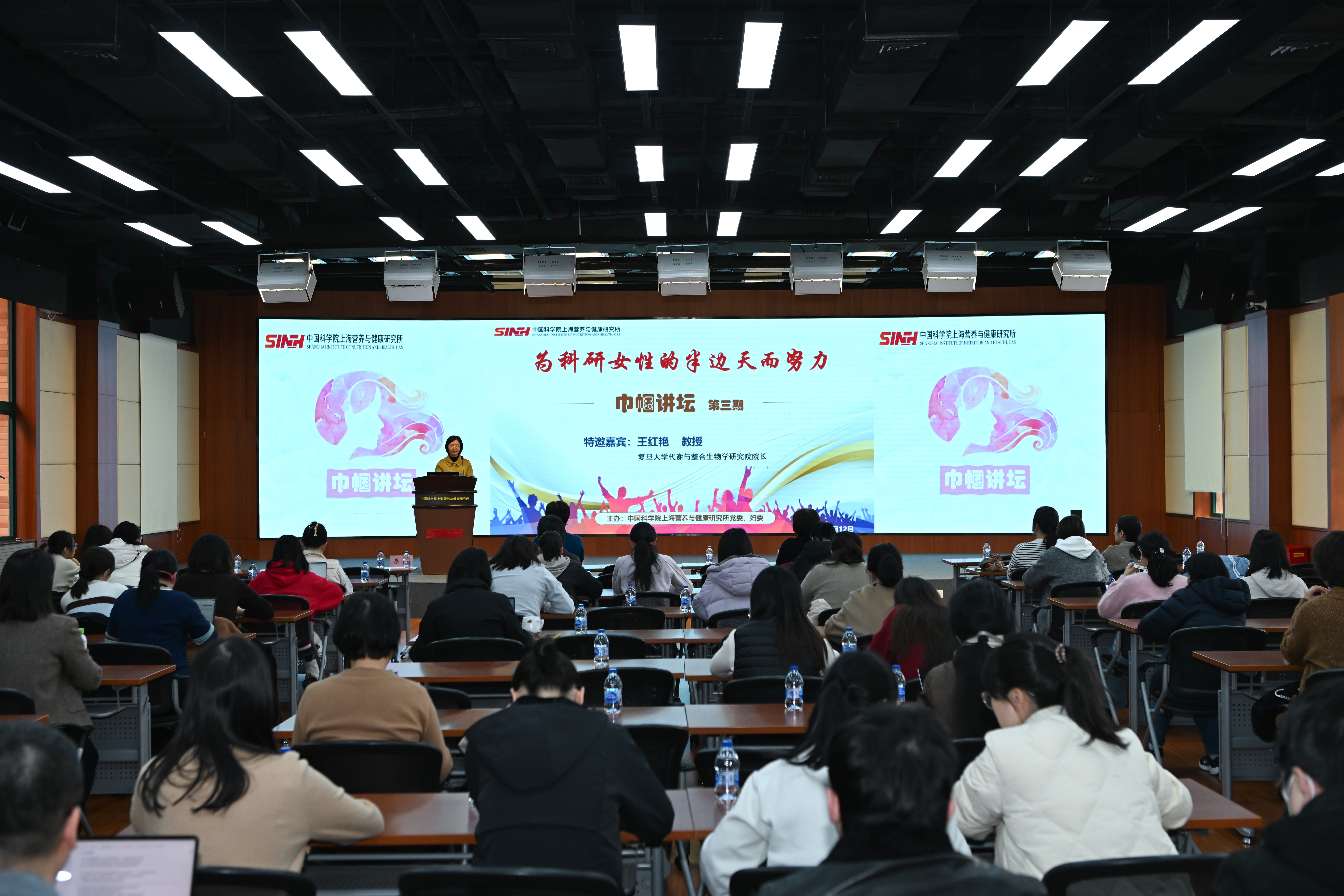 3月12日下午,营养与健康所第三期“巾帼讲坛”成功举办。讲坛特别邀请复旦大学代谢与整合生物学研究院院长王红艳教授,作题为《为科研女性的半边天而努力》的专题报告。王红艳长期致力于重大出生缺陷的遗传学研究,她在报告中分享了科研瓶颈突破与研究热情培育的心得,同时呼吁女性要自立自强,自尊自信。报告会后,女同胞们就遗传内因及环境诱因关联、遭遇科研瓶颈时的抉择等问题与嘉宾进行交流并得到了耐心细致的解答,纷纷表示受益匪浅、振奋人心。