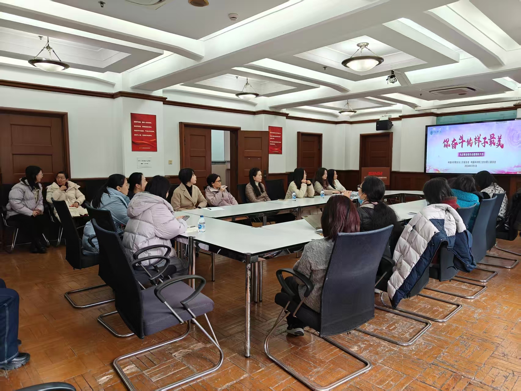 3月5日上午,中国科学院“你奋斗的样子最美”先进事迹报告会暨表彰大会在京隆重举行。为弘扬榜样精神、凝聚奋进力量,营养与健康所妇委在生科大楼300会议室设立分会场,组织妇委委员、妇委小组长及职工代表集中收看直播。与会人员凝神聆听全院各领域巾帼榜样扎根科研、矢志攻关的奋斗历程与初心故事,纷纷表示将以先进为标杆、以榜样为动力,满怀热忱投身科技创新事业,勇担使命、砥砺前行。